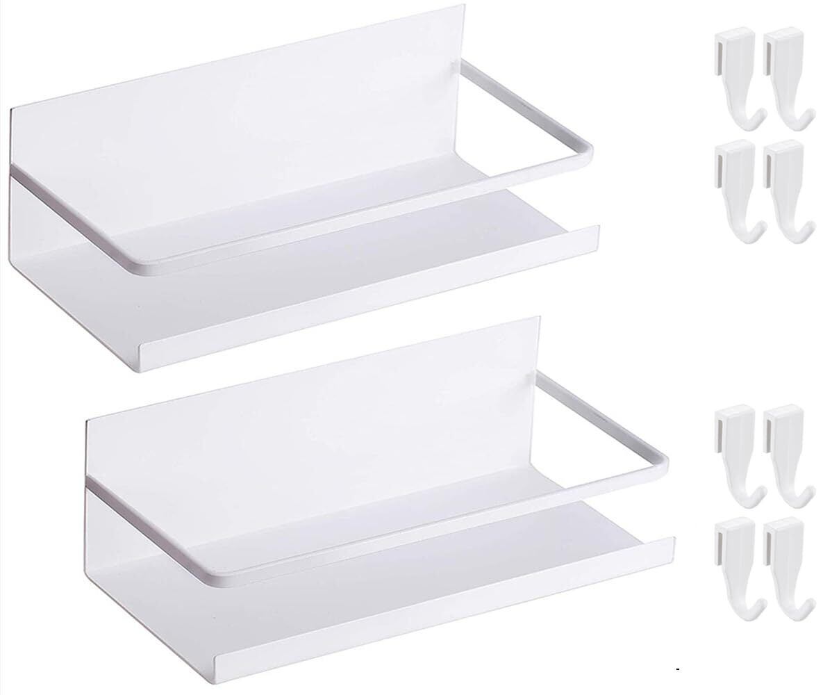 マグネットラック調味料ラック冷蔵庫ラック キッチンラック バスルーム スパイスラック マグネット棚 マグネット収納 洗濯機 収納 超強力マグネット2個セット フック付きホワイト