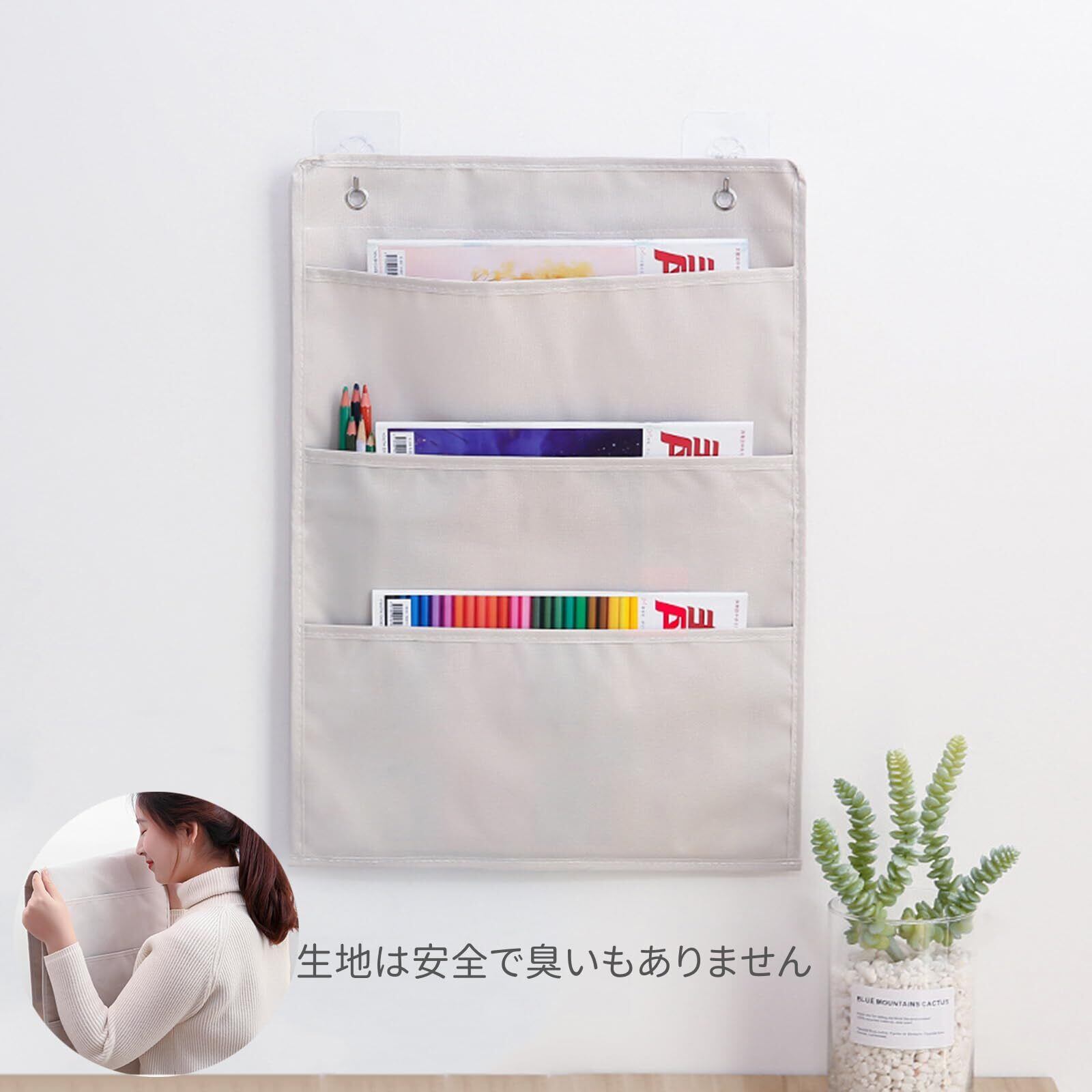 AirAkl ウォールポケット 3ポケット書類収納 壁掛け A4サイズ 壁掛け ポケット 書類 雑誌 小物 本 資料 収納 布製 ドア掛け レター 吊り下げ 整理整頓 (白)