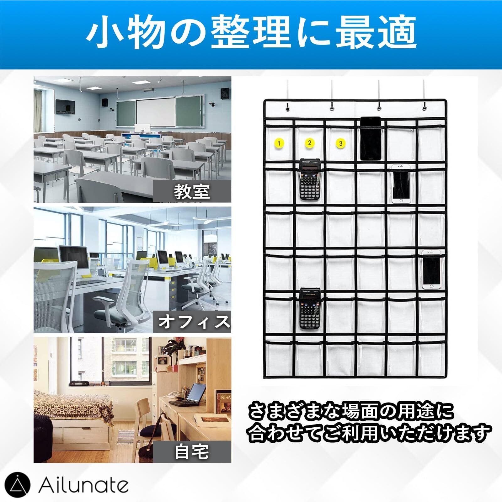 Ailunate ウォールポケット カレンダーポケット お薬カレンダー クリア 壁掛け 収納 透明 吊り下げ クローゼット 小物 フック付き 36ポケット (ホワイト)