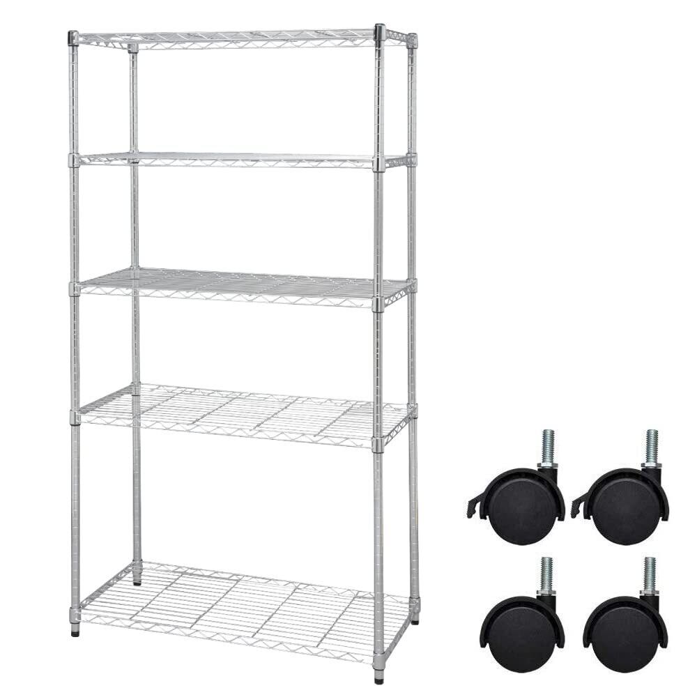 アイリスオーヤマ メタルラック 本体 キャスター付 幅91×奥行46×高さ178.5cm 5段 耐荷重60kg ポール径25mm スチールラック サビに強い 防サビ加工 棚 シェルフ SE-918EC