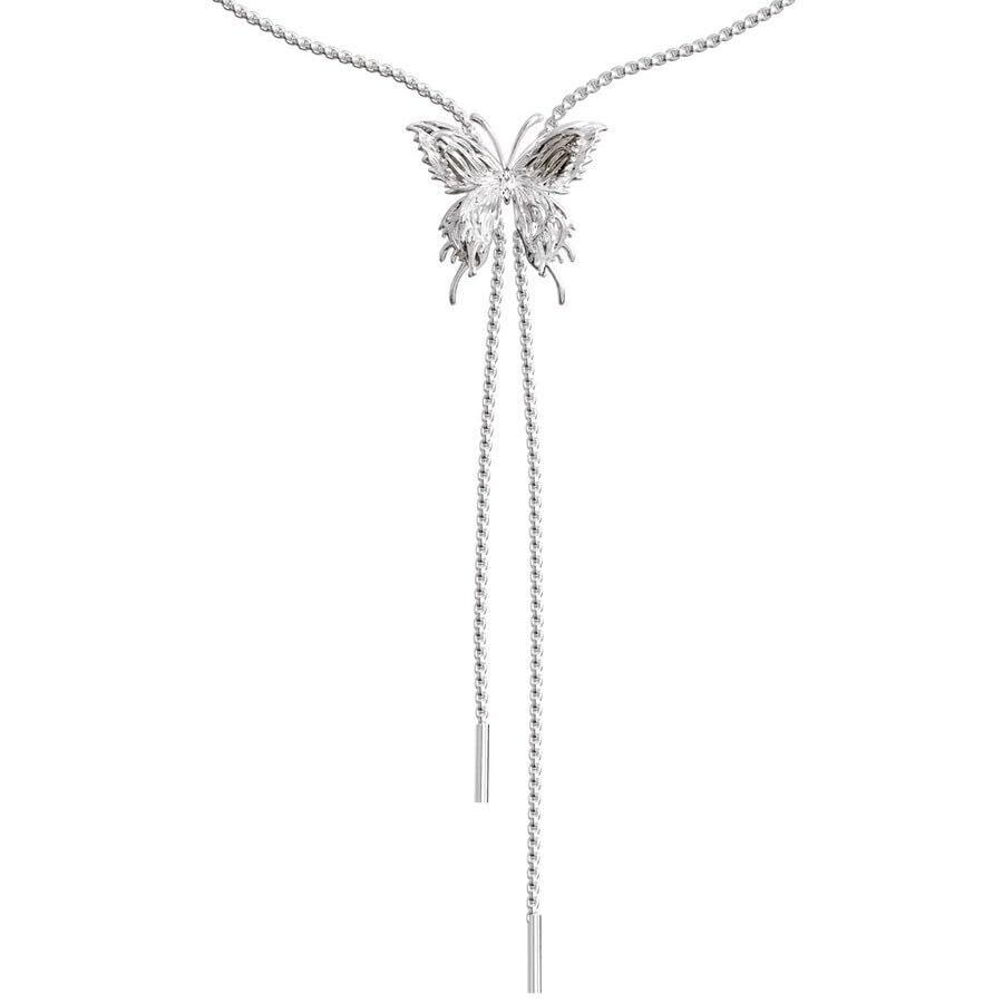 エレガントなデザイン: このロングネックレス レディースは、繊細なチェーンとダイヤモンドのようにきらめく蝶の飾りが特徴で、上品な装いに華やかさを添えます。