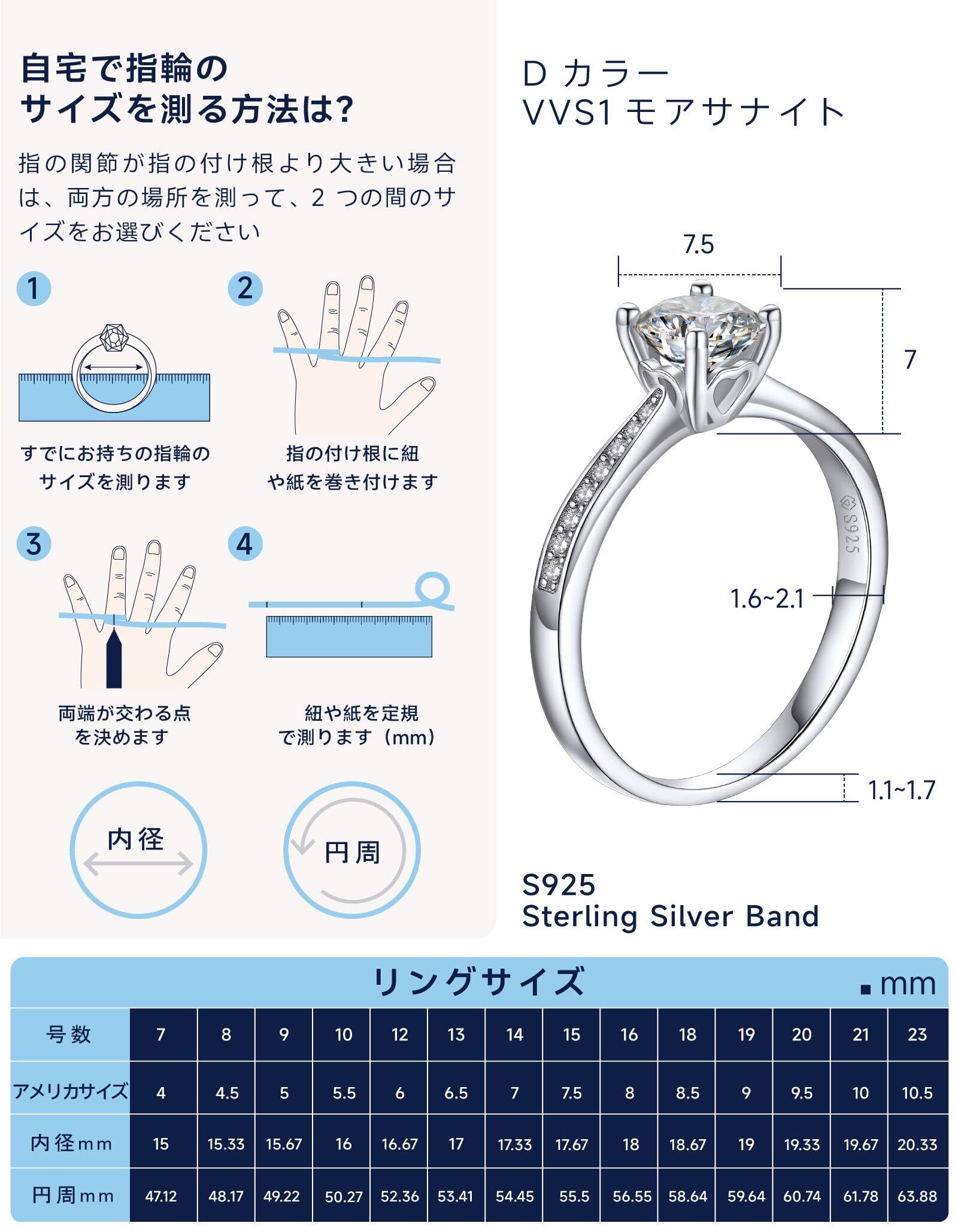 [MomentWish] 婚約指輪 レディース, 1カラット モアサナイト リング, シルバーリング 925 プロポーズリングエンゲージリング 結婚記念日 Dカラー VVS1 ダイヤモンドプレゼント 女性 人気