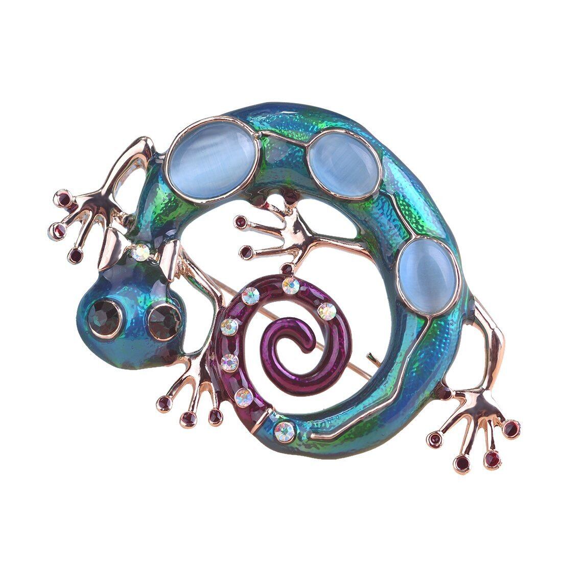 MECHOSEN トカゲ キャッツアイ ブローチ ピン クリスタル レディース 男性用 子供用 ジュエリー ブルー オパール 水晶 動物 メンズ ジュエリー ホワイトデー 人気 お返し ブローチピン バッジ 面白い