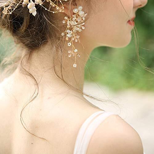 【irismile】小枝イヤーアクセサリー ウェディング ボタニカル ナチュラル ワイヤー 淡水パール 花 結婚式 ブライダル