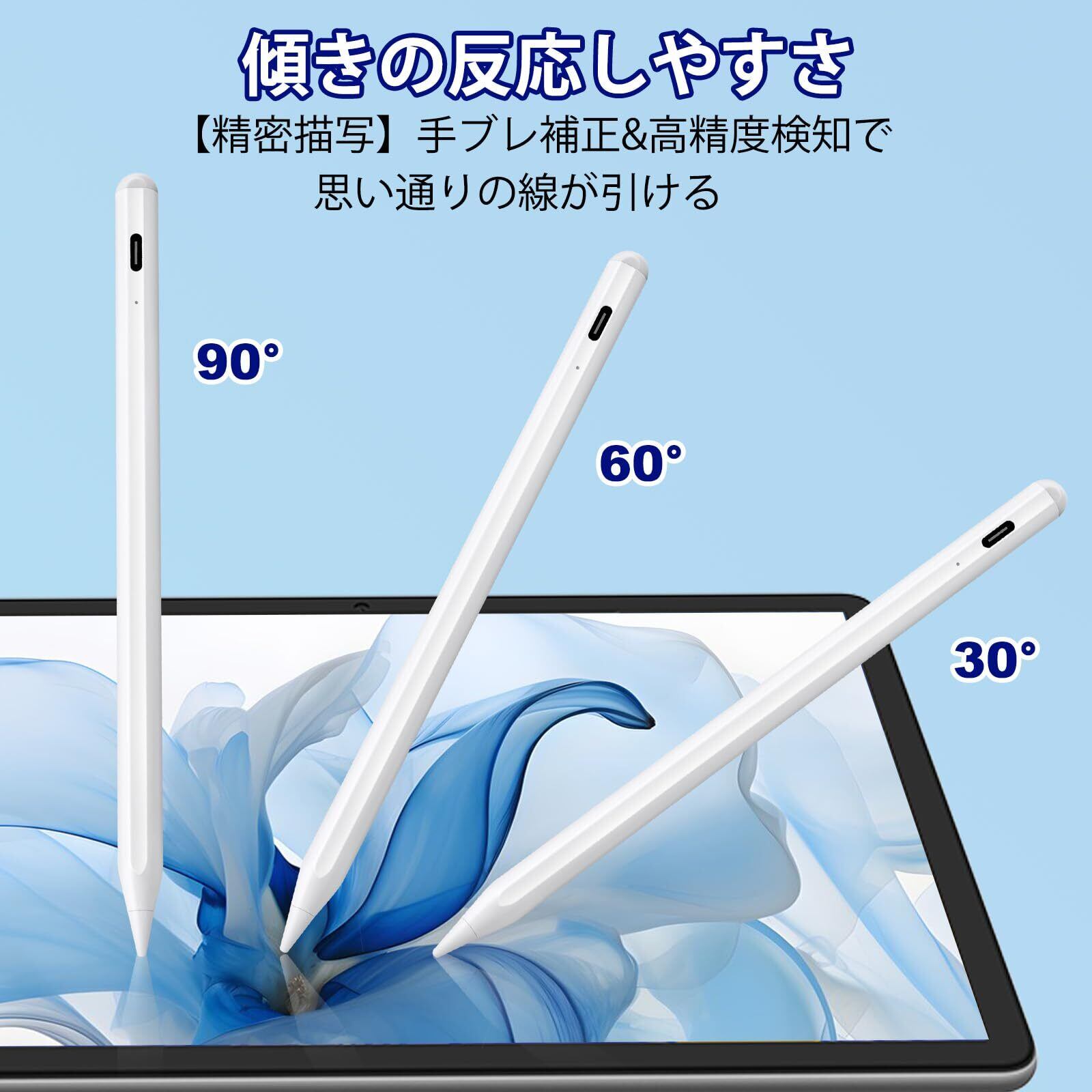 BLEBLE iPad ペンシル アップルペンシル 2018年~2024年 iPad対応 タッチペン超高感度、傾き感知/磁気吸着/誤操作防止、軽量、耐久性と耐摩耗性スタイラスType-C急速充電スタイラス、学生や子供の書き込み、ペイント、デザイン描画 ホワイト