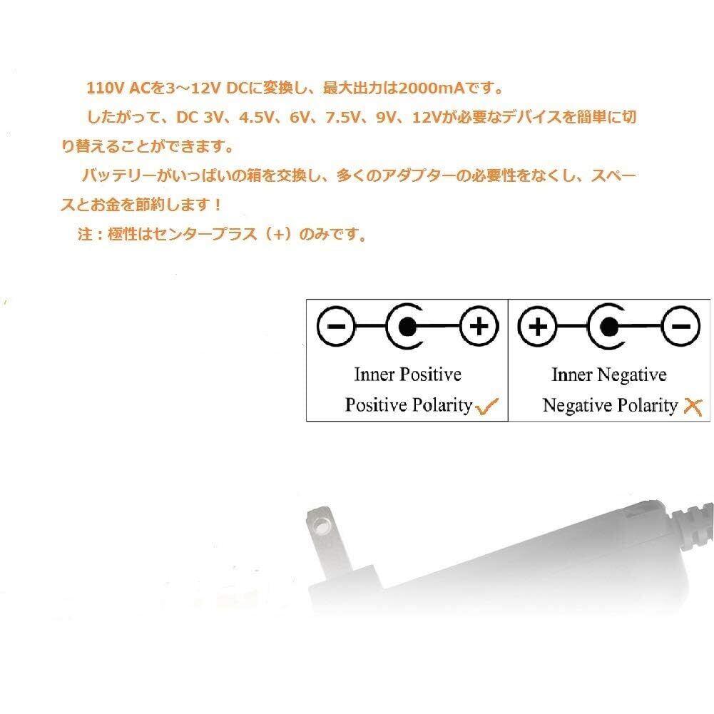 アダプタ入力:AC 100V〜240V 50 / 60Hz、アダプタ出力:3V / 4.5V / 5V / 6V / 7.5V / 9V / 12V - MAX 2A(2000mA)この交換用電源アダプタは、さまざまな電圧、交換可能なヒント、過電圧/過電流/短絡/過熱の完全保護を提供します。
