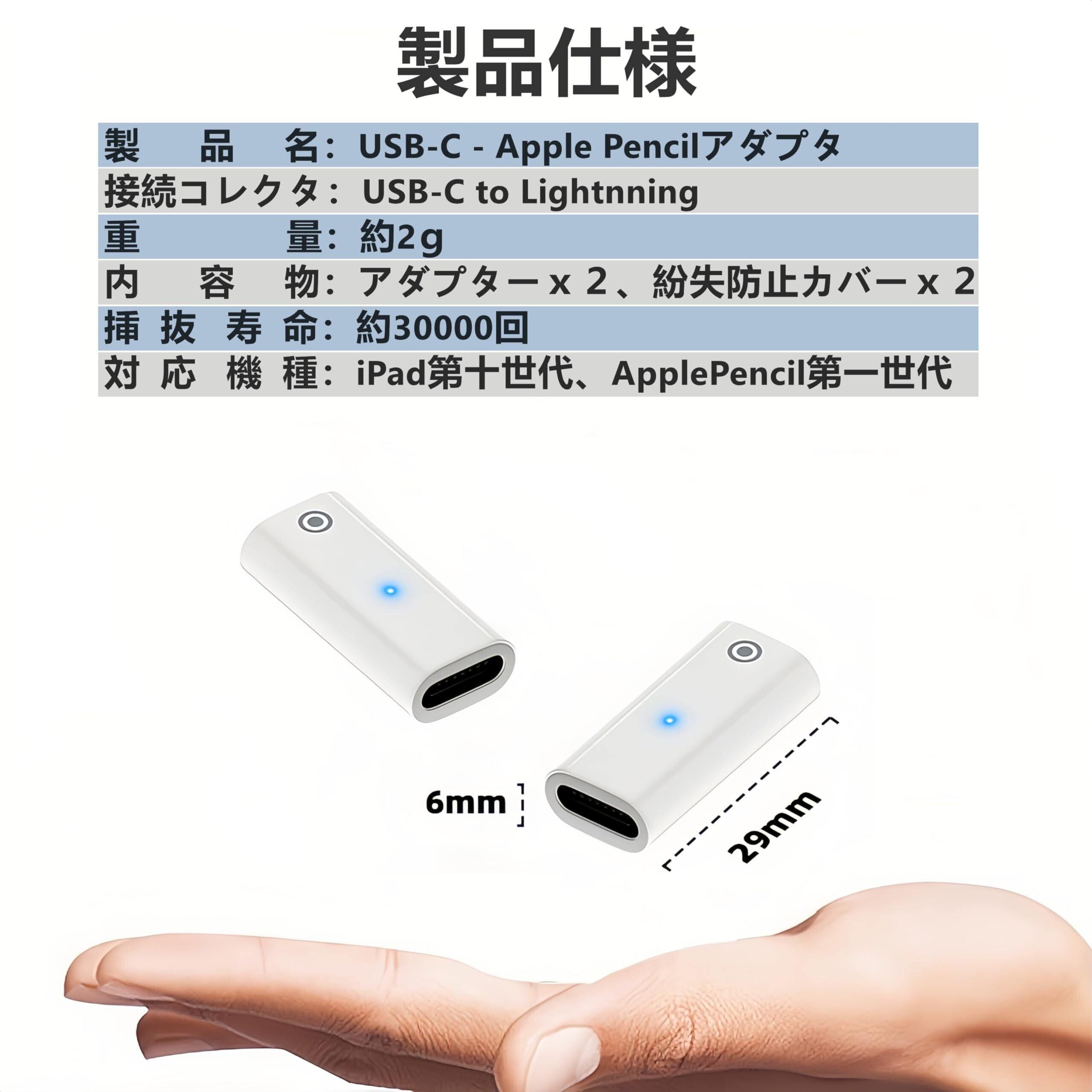 【耐久性よく・Apple Pencil 充電 保護】のApple pencil充電アダプタは高品質のABS材料で作られ、耐久性があります。製品はスマート保護チップが内蔵され、過放電保護機能があって、Apple Pencilとipadを保護します。(注:このアダプタはApple Pencil(第一世代)専用で、iPad第10世代と互換性があります)。