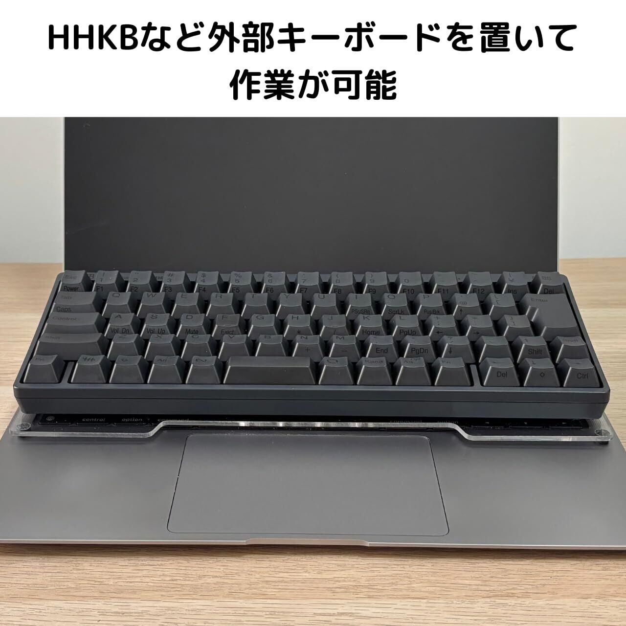 HHKBをノートPCの上に置く、いわゆる「尊師スタイル」を手頃な価格で実現できます。(もちろん、HHKB以外のキーボードでもご利用いただけます)
