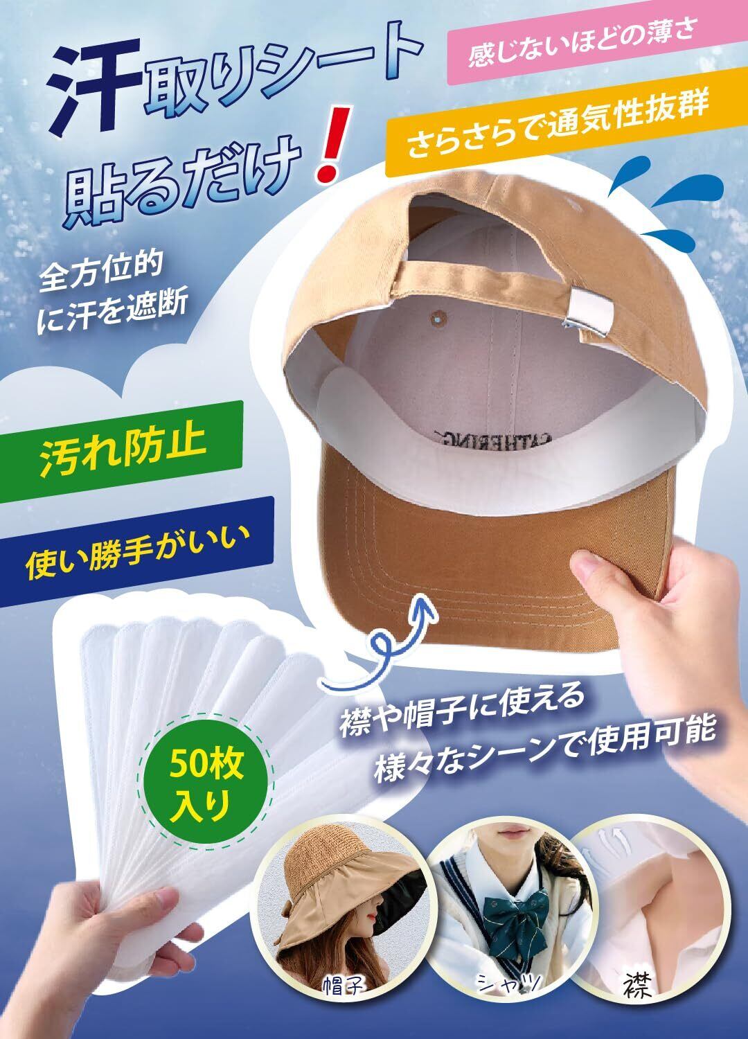 【幅広い用途・たっぷり数量】長く使える帽子用汗取りシート(50/100枚入り)、衣服の襟や帽子、男性、女性、子供用のあらゆる構造化された帽子に最適です、スポーツブラなどにも適用できます。