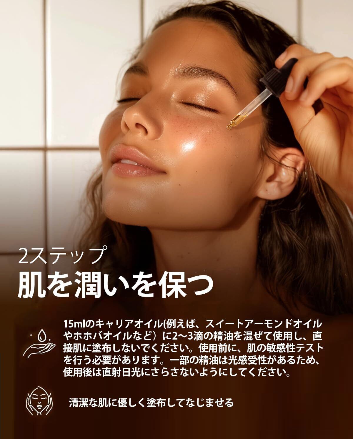 【密封抗酸化設計】厚手で衝撃に強い遮光瓶を採用しており、未開封時には長期間エッセンシャルオイルを保存可能で、酸化を防ぎます。ボトルの口部分の設計により、再販売を防止します。開封後は、最良の効果を保つために6ヶ月以内にご使用ください。 【仕様】1滴の容量は約0.05mlです。