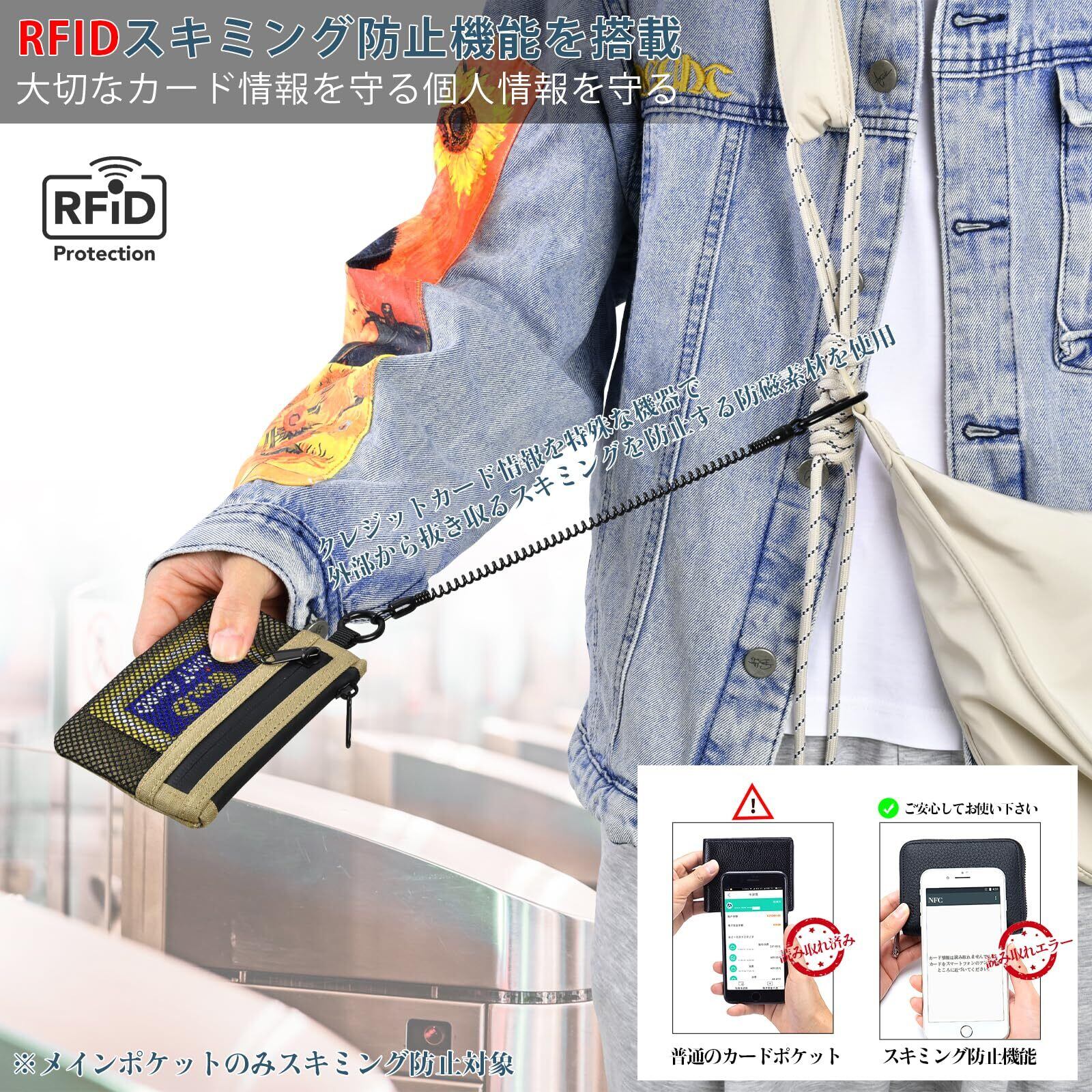 【スマート×防犯性を追求したミニマルウォレット】:海外旅行から日常のシーンまでお金やクレジットカード、キー、小銭をコンパクトに持ち運べて、付属のキーチェーンを使えばより防犯性を高めて安心して移動ができる。カラビナがついているので腰のベルト入れ部分などにぶら下げてポケットに収まります。 利用する際にパスケースをポケットから取出し手を伸ばすとスパイラルコードが伸びて即座に出し入れして使うことができます。スパイラルコードは強く引っ張りすぎると破損の原因になりますのでご注意願います。