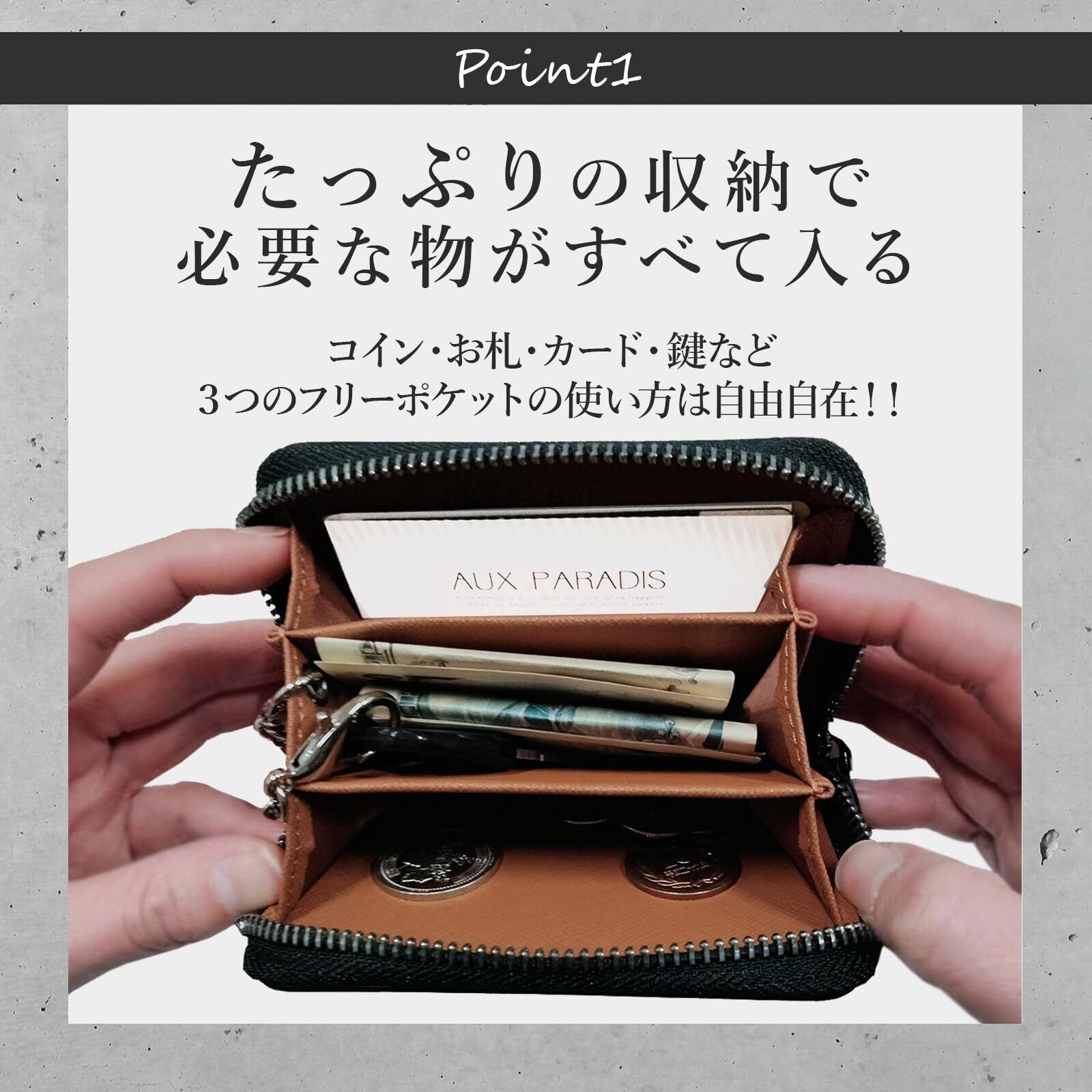 「機能性と収納力」にこだわったカーボンレザーコインケースです。小銭、お札、カードはまとめてしっかりと収納可能! 取り外し可能なキーチェーンも付いているので大切な鍵を保管する事も可能です!