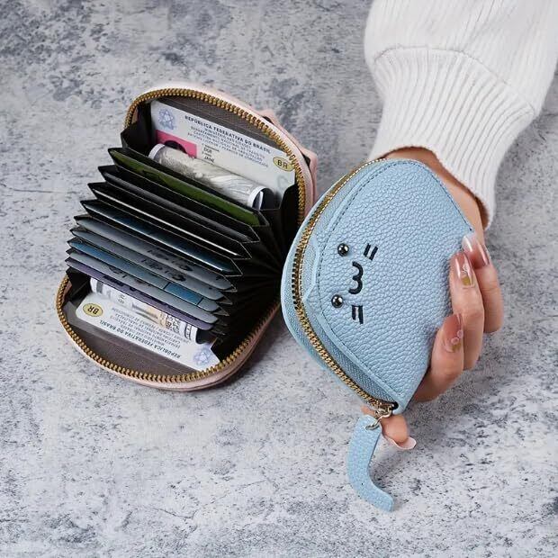 カードケース 小銭入れ ビーズ かわいい 猫 ネコ 小さい コンパクト 大容量 たくさん入る 多目的 クレジットカードホルダー (ピンク)