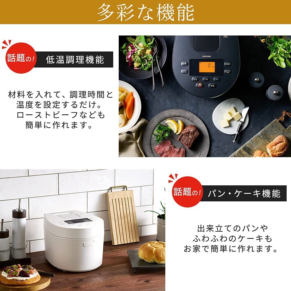 【低温調理可能】 アイリスオーヤマ 炊飯器 3合 IH式 一人暮らし 50銘柄炊き分け機能 極厚火釜 ヘルシーメニュー 低温調理機能 パン・ケーキ機能 ブラック RC-IL30-B おしゃれ かわいい