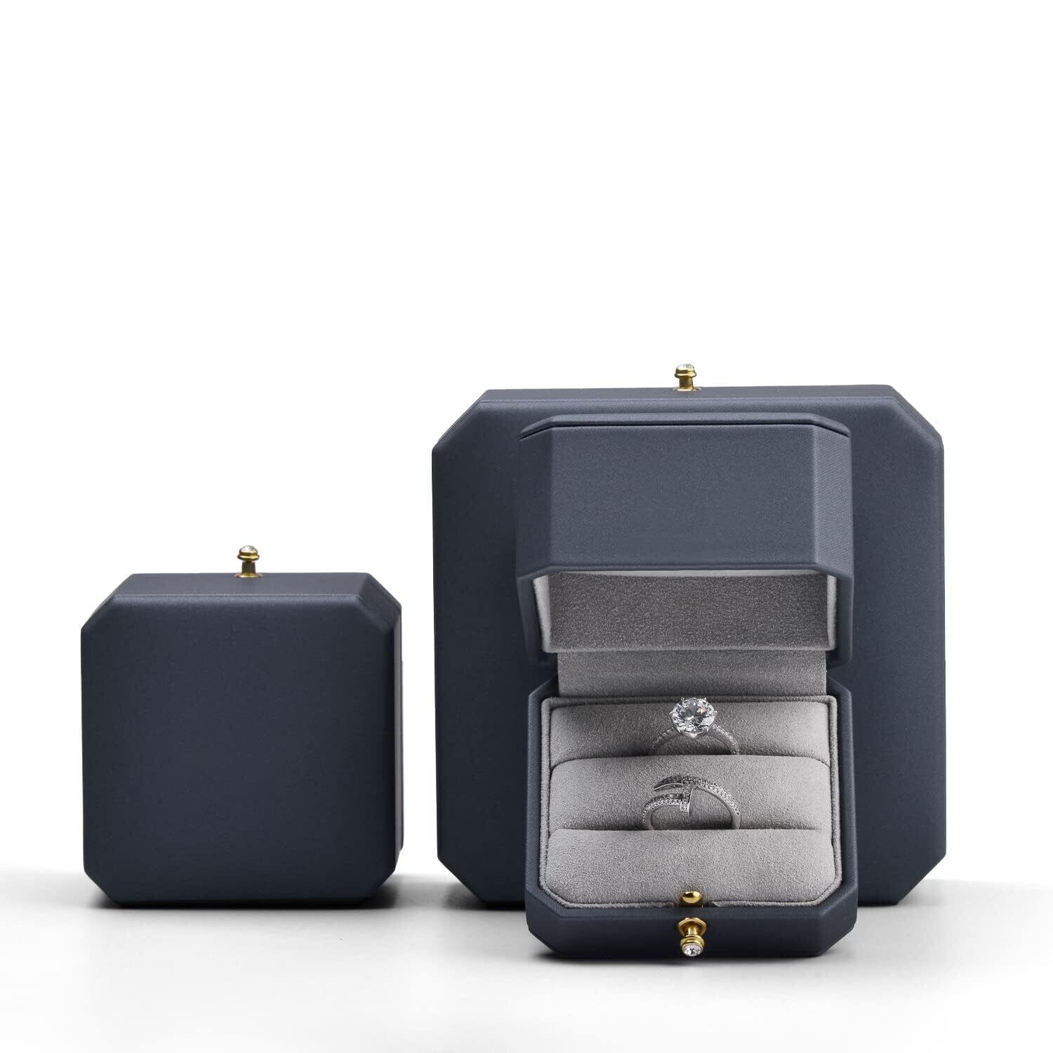 【こだわりのデザイン】この指輪ケースは伝統的な四角や丸型とは異なり、クラシックでユニークな八角形のデザインが、一目で目立ち、ブランド認知度を高めるだけでなく、リングボックスをより重層的で高級感のあるものにしています。ケースの開閉は簡単で、前方の金具を押すだけでパカッと開きます。リングケースの上部(蓋部分)を深くすることで、大きなジュエリーも収納できます。