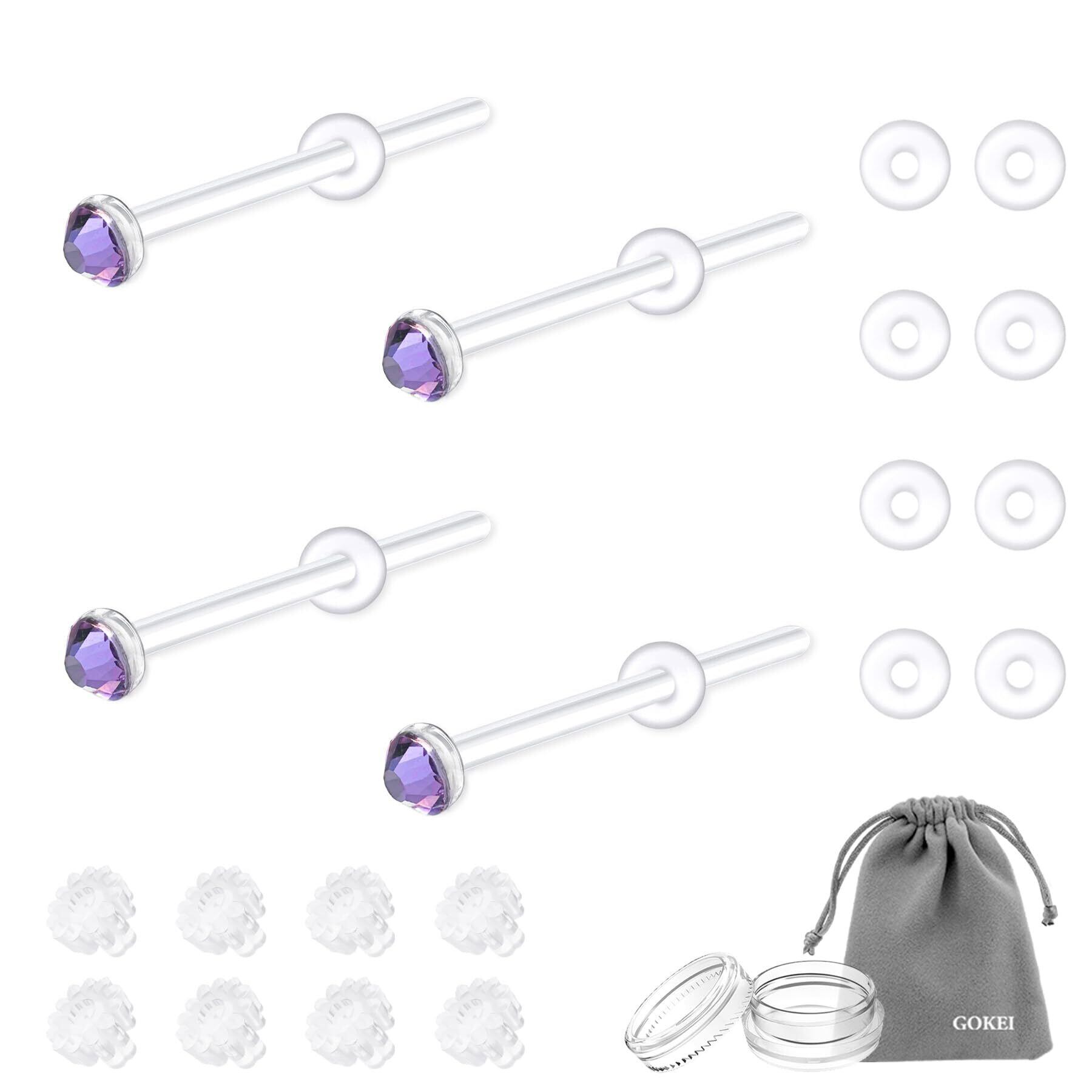 [GOKEI] ガラスピアス 透明ピアス 強化ガラス ピアス レディース 【4本ピアス+16個キャッチ】 14G 16G 18G 20G 金属アレルギー対応 軟骨ピアス ボディピアス つけっぱなし ガラス ピアッサー 透明 肌になじむ 軟骨 へそピアス キャッチ 両耳用