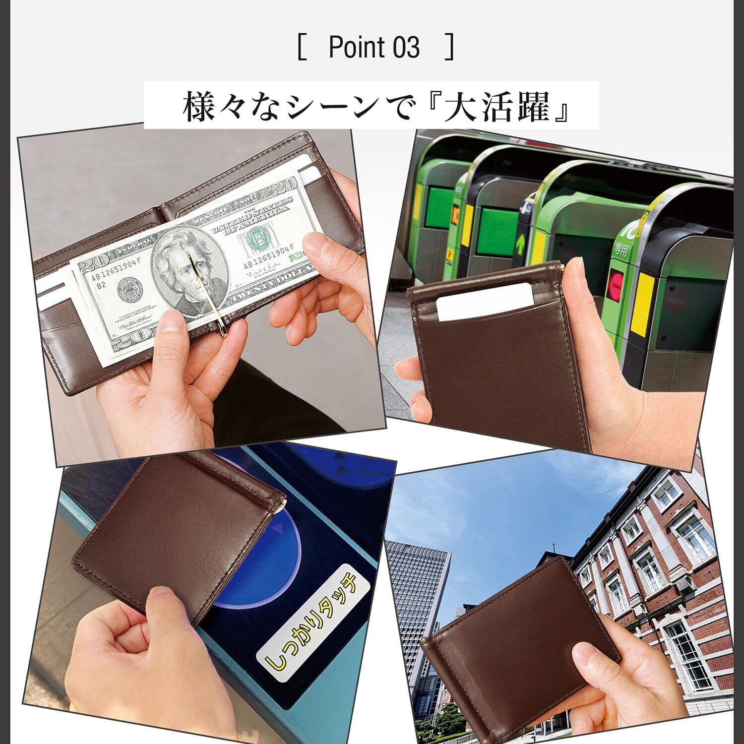 【シンプルデザインに特化したスマートマネークリップ】カード収納は外側ICカードポケットだけでなく隠しポケットも装備した合計6ポケット。 しかも、サッと気軽にカード等を挟めるミニポケット付き。スマートなビジネスシーンや小銭を使わなくなるキャッシュレス時代にはピッタリなスマートウォレットです。