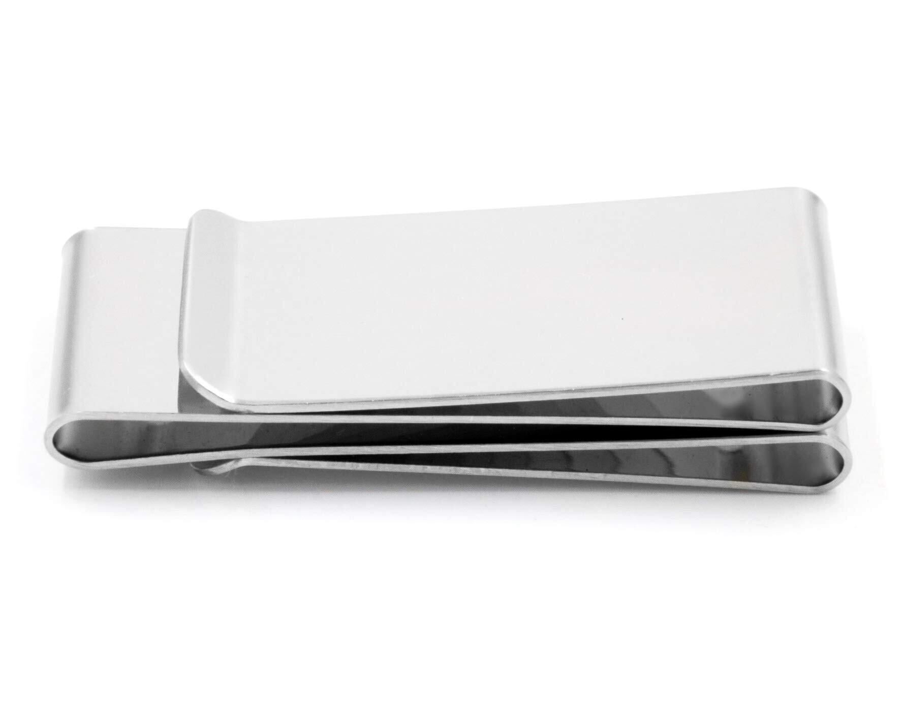 3つ折りのステンレス製マネークリップ。表面、裏面、中面に紙幣やカード類を券種や種別ごとに仕分け可能。一枚でもしっかり、三つ折りにしたお札やカードを無理なく挟める使い易いコンパクトなカードクリップです。