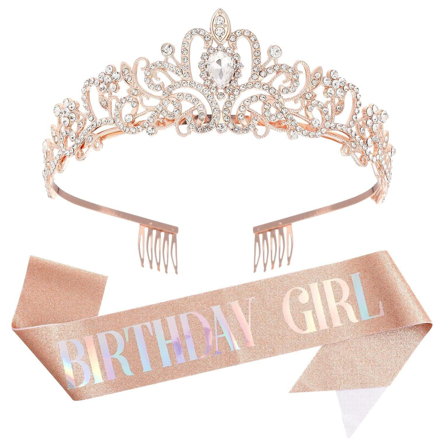 [koundeneko] 誕生日王冠たすきセット BIRTHDAY GIRL カチューシャ エレガント おしゃれ 七五三 成人式 誕生日会 結婚式 花嫁 髪飾り 記念写真 撮影道具 パーティーグッズ ローズゴールド
