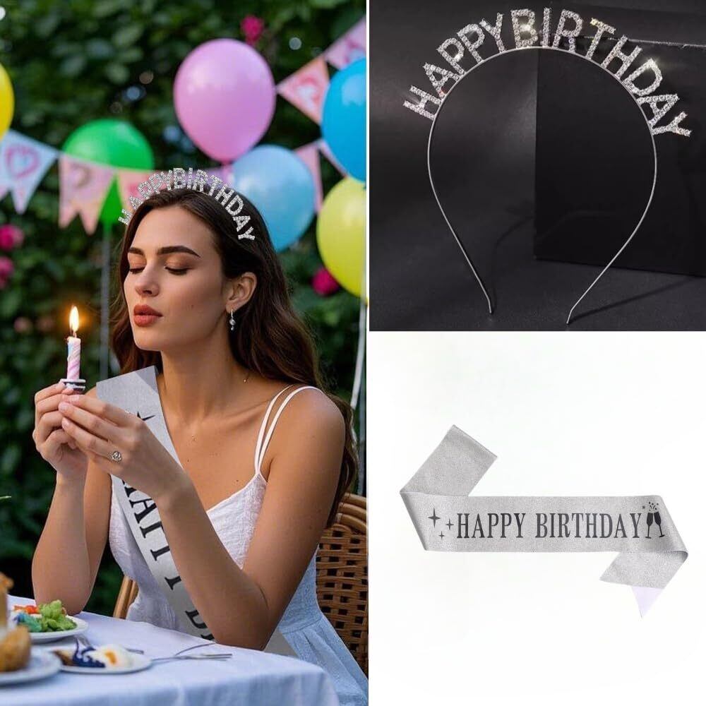 [Mawaki] 誕生日 王冠 ティアラ たすき 2点セット HAPPY BIRTHDAY ティアラ ベルトセット お誕生日会 飾り 撮影 パーティー小物
