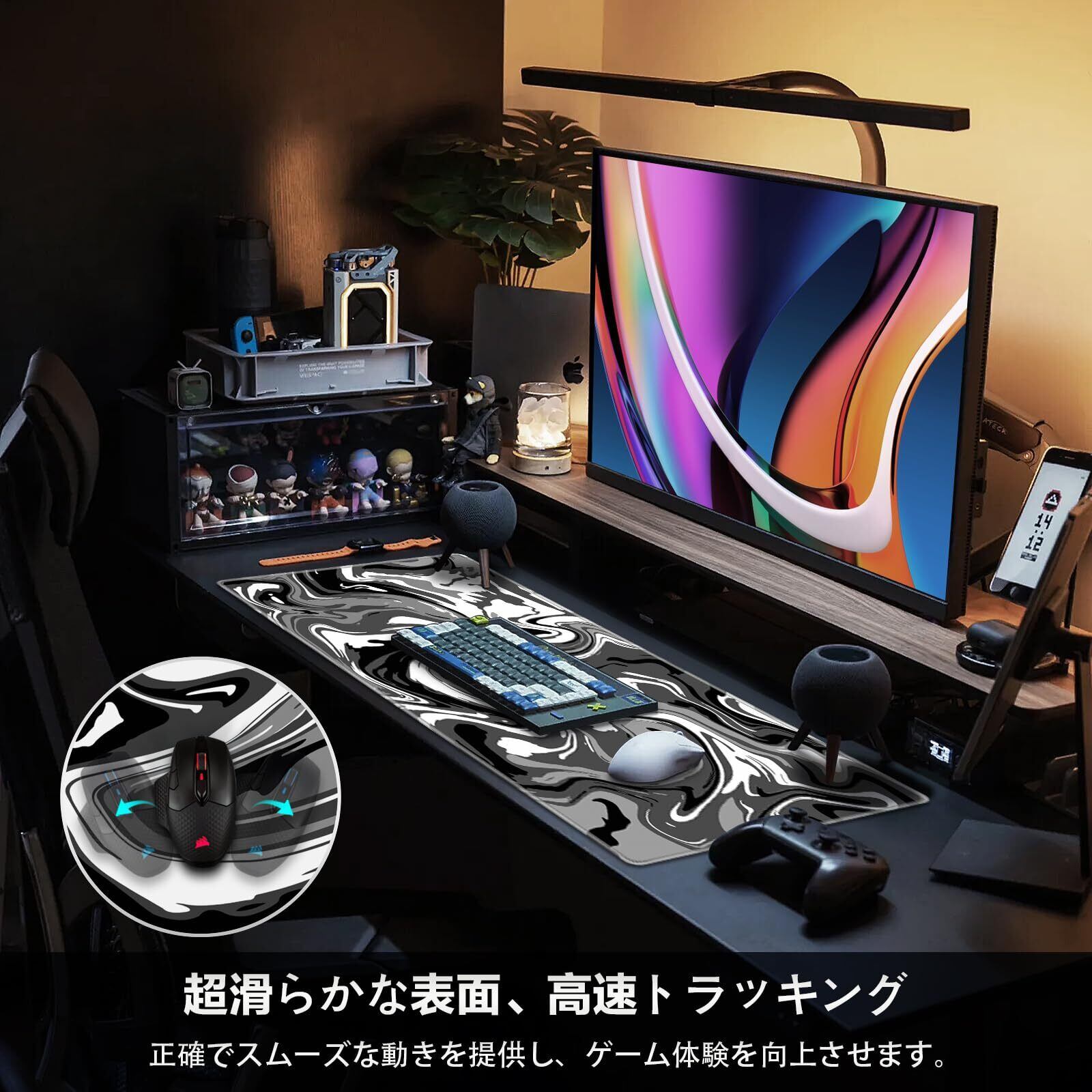 【[マウスパッド 大型]サイズ:90x40cm/35.4×15.7inch。ゲーミングマウスパッドは、フルサイズのキーボード、マウス、ラップトップ、その他のアイテムを収納するのに十分です。すべてのキーボードとマウスにフィットし、マウスを動かすことができます。】サイズ:90x40cm /35.4×15.7inch。ゲーミングマウスパッドは、フルサイズのキーボード、マウス、ラップトップ、その他のアイテムを収納するのに十分です。すべてのキーボードとマウスにフィットし、マウスを自由に動かすことができます。