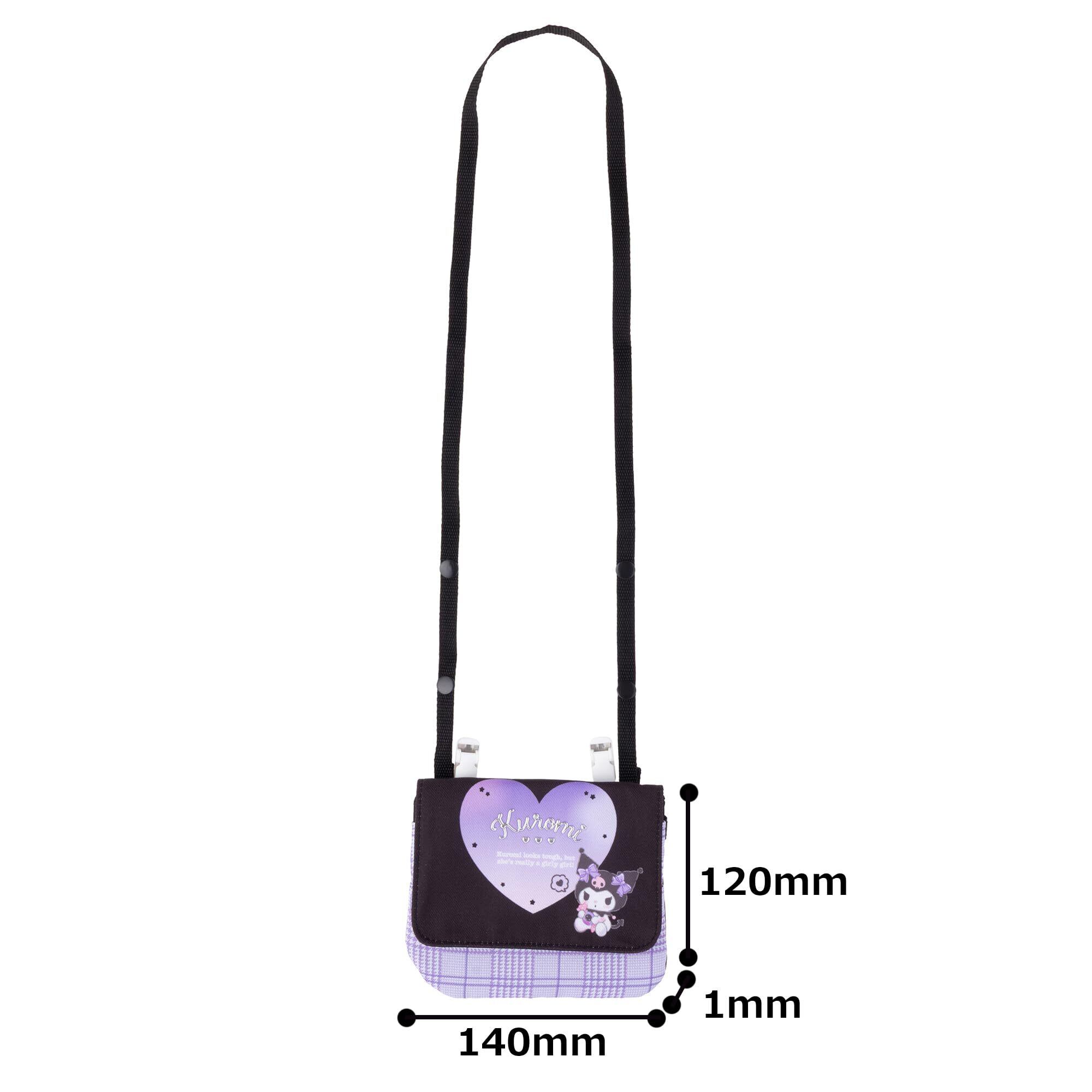 本体サイズ:約幅14×奥行1×高さ12cm(※ショルダー紐、クリップ部分含まず)ショルダー紐の長さ:約90cm。主な材料・原料:ポリエステル