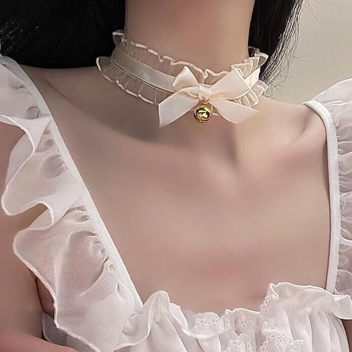 [Rzilmer] 2個セット 首輪 レディース チョーカー レース 男女兼用 コスプレ 鈴 可愛い ゴシック レディースチョーカー 調節可能 首飾り ハートデザイン 蝶結びチョーカー 原宿系 人間用 地雷系 道具