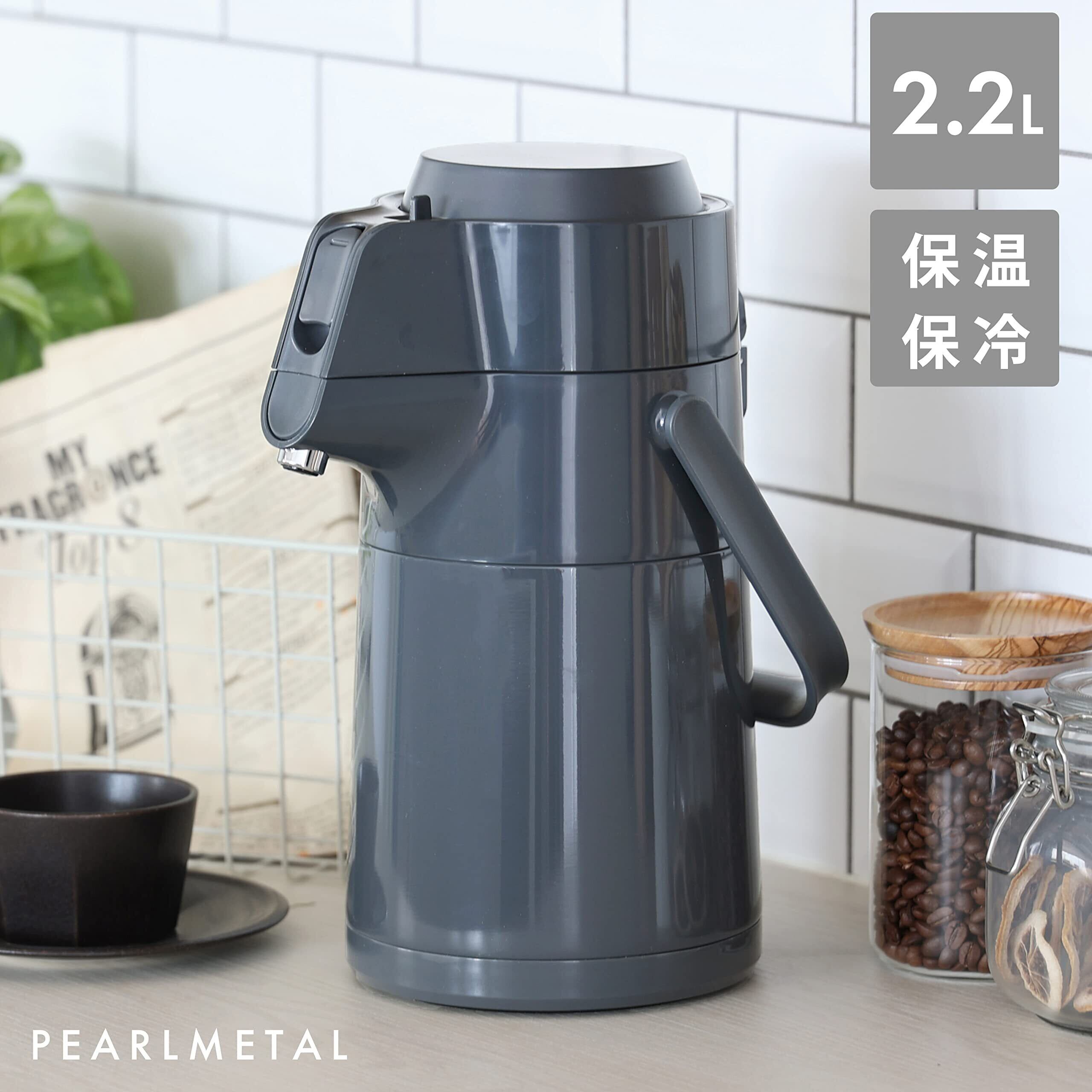 パール金属 ポット エアーポット 2.2L ステンレス 保温 保冷 卓上 広口 アップ形状 グレー エコステージ HB-6760