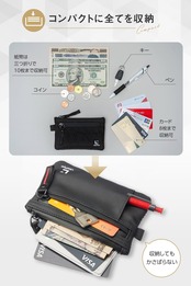【他にはないセキュリティ性】: 海外旅行中のスリやスキミング対策に、メインポケットにスキミング防止機能を搭載。付属のブラックキーチェーンでパンツのフックに固定でき、引っ張られても簡単に盗られない安心設計。 【突然の水濡れも安心】: 撥水加工ナイロンとYKK防水ジッパーで、急な雨や水濡れから中身をしっかりガード。耐久性も高く、開閉もスムーズに。