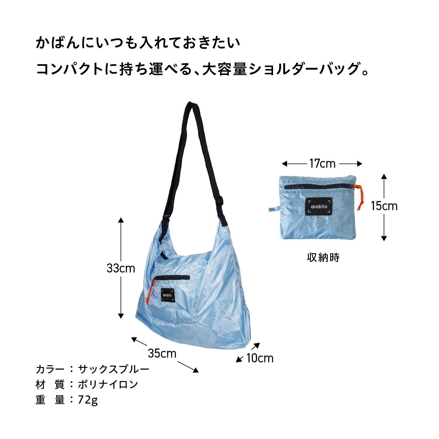 asobito(アソビト) パッカブルショルダーバッグ 各色 ライトウェイト 収納 コンパクト 軽量 大容量 かばん スポーツ アクティビティ