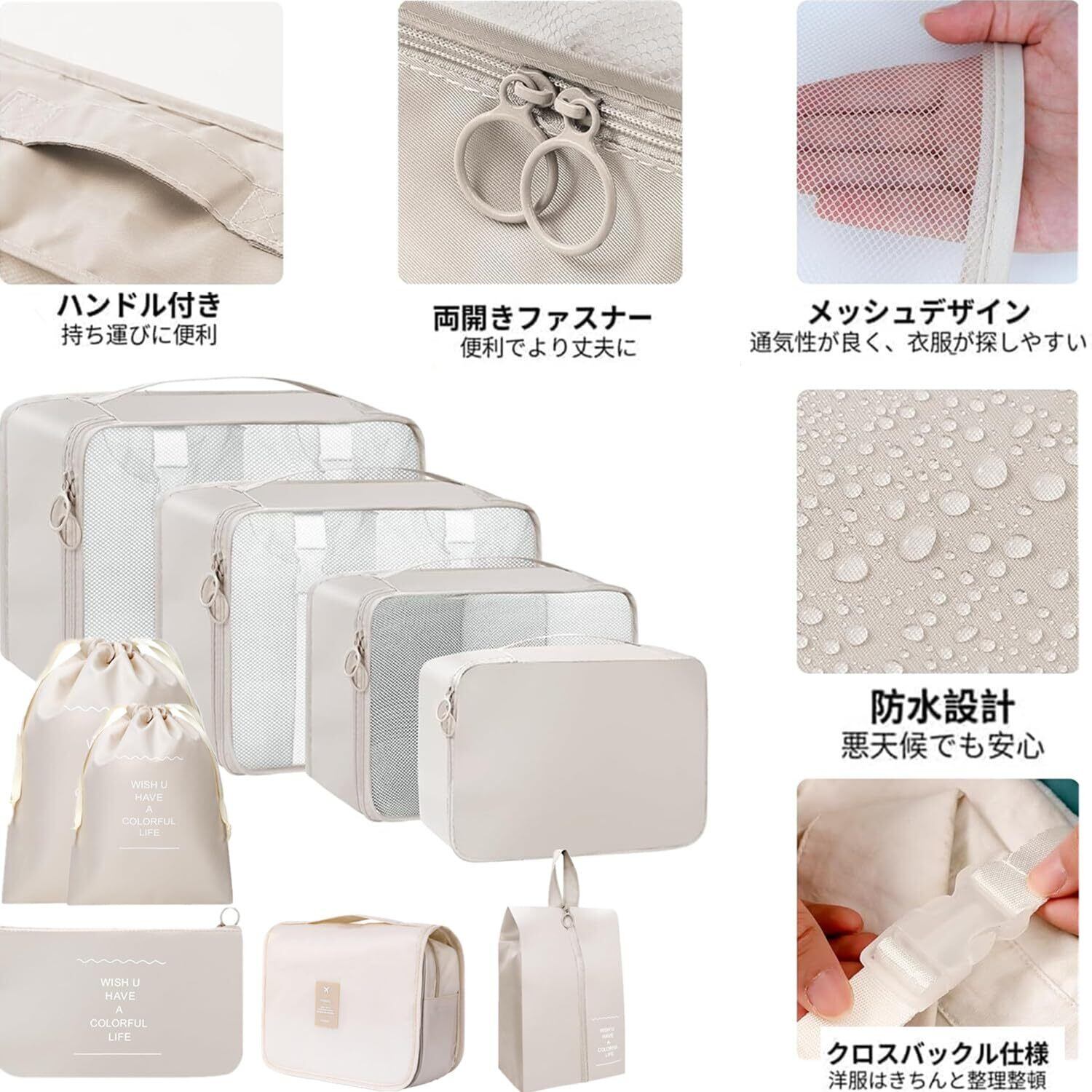 トラベルポーチ 11点セット 旅行用 ポーチセットおしゃれ アレンジケース パッキングポーチ 衣類収納 出張 整理 便利グッズ 靴用 下着収納 洗面用具 シューズ 小物入れ 軽量 防水 大容量 収納 旅行用便利グッズ(ベージュ)