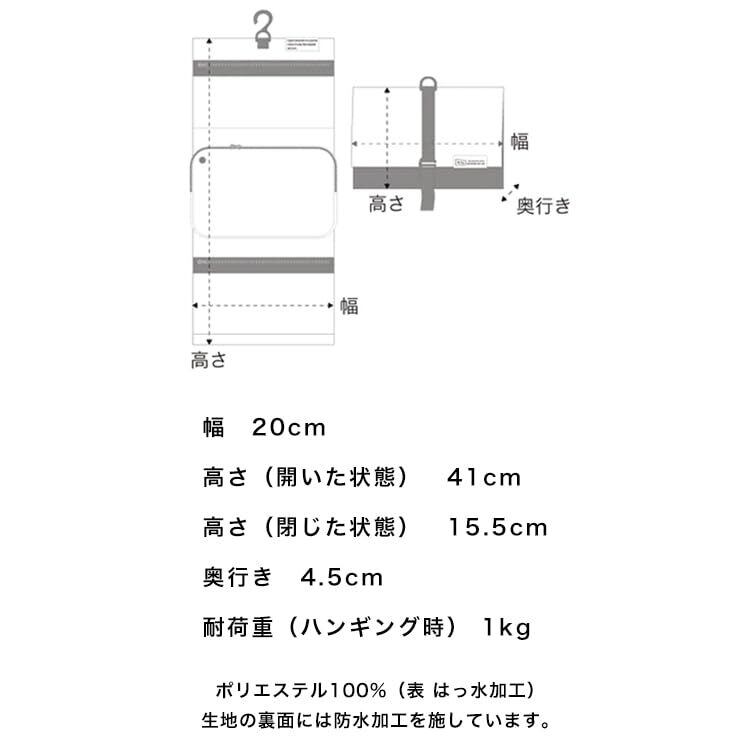 トイレタリーを入れやすい、ちょうどいいサイズの吊り下げポーチ。