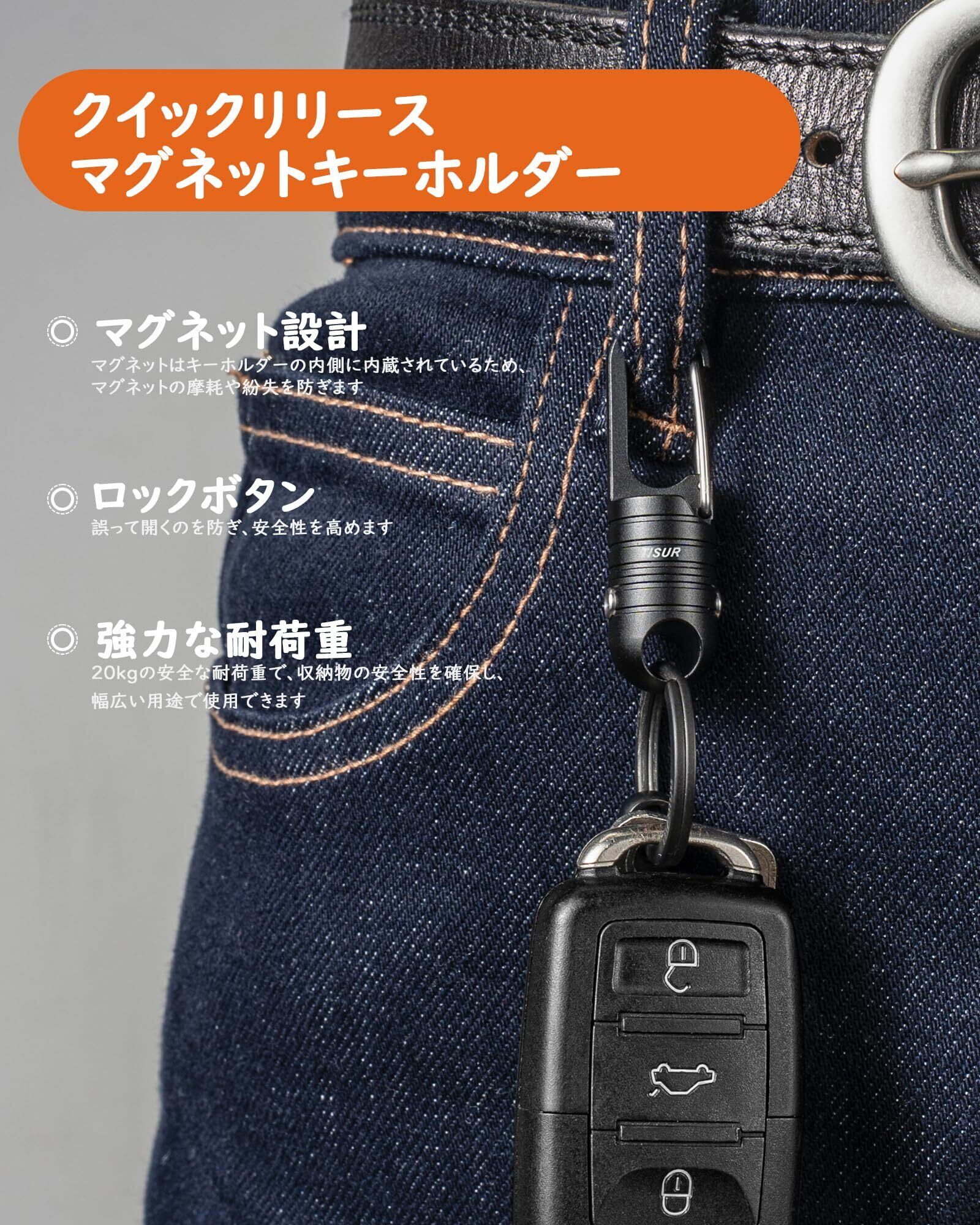 多機能マグネットジョイント:この分離型 クイックリリース カラビナは、耐久性と強力さを兼ね備えながら、軽量なので様々な鍵を簡単に管理できます。車の修理、駐車、ランニングなど、どんな場面でも家の鍵を素早く取り外すことができます。また、犬の散歩、就労許可証や携帯電話の掛け付けなどにも適しており、日常生活に非常に便利です。
