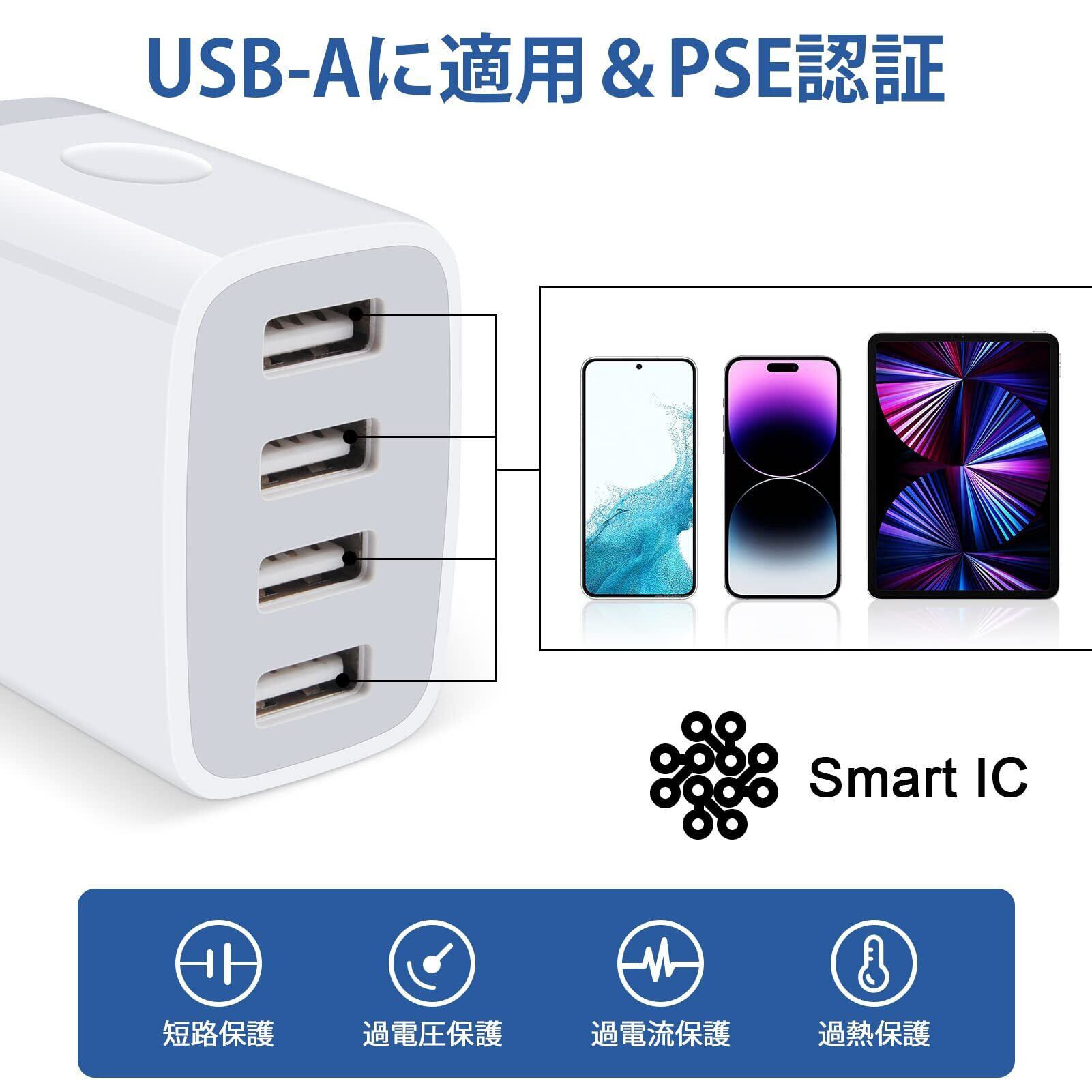 USB コンセント 4ポート USB充電器 24W ACアタプター iPhone急速充電器【PSE認証済/USB-A*4口同時】FodLop 2.4A急速チャージャー USB電源 スマホ充電器 iPhone16充電器 Android充電器 携帯充電器 コンパクト iPhone 16/15/14/13/12/11/8/XR/X/SE,Galaxy,Aquos,SonyなどのUSB機器対応