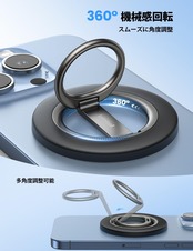 ️【機械感・360度回転可能】️Magsafe対応スマホリングは内部に機械構造が設置され、楽のカチカチ回転音が鳴ると同時にスムーズに360度回転機能を実現します。回転感抜群!Magsafeリングには内部が回転可能なので、スマホリングを外しなくてもスタンドを回転させ、お好みの角度を調整できます。角度は自由に調整できるので、動画視聴やビデオ通話が驚くほど快適になります。両手も解放し、スマホの操作や動画を見ることなどをより便利になります。