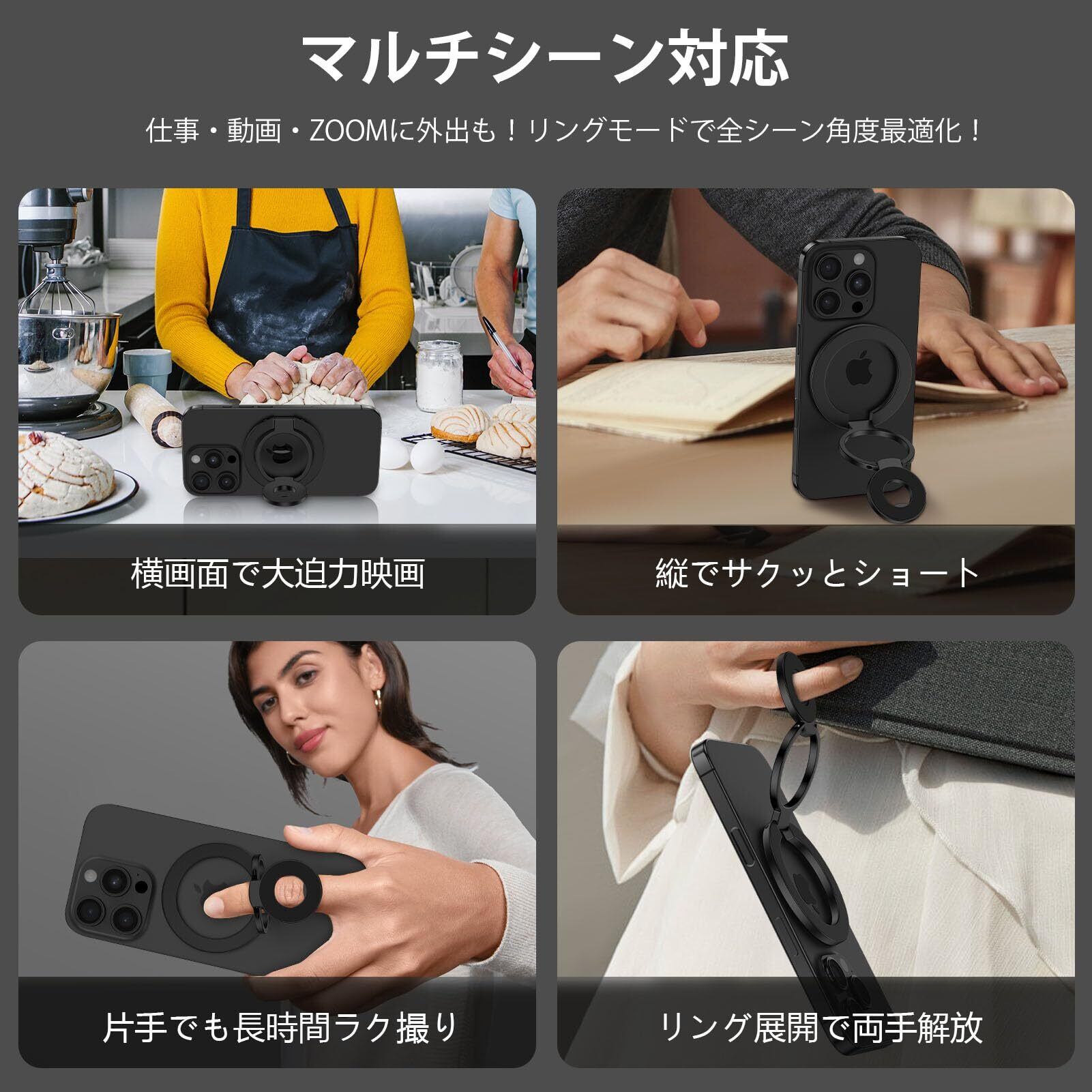 【全てのスマホとケースに適用】 iPhone 16/15/14/13/12シリーズと公式Magsafeケース、メタル/マグネットリング付きケースはそのまま使用可能。iPhone 11/X/SEやXperia/Galaxy/Huawei/Google Pixelなど4.3-7.6インチのスマホには、付属のメタルリングを貼るだけで簡単装着。