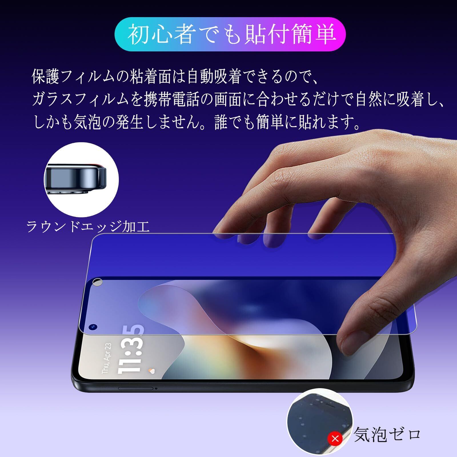 【ブルーライトカット】MOTO G66j/G66y 5G 強化フィルムのコアにブルーライトカット反射技術を加え、ブルーライトカット率93%に達し、ブルーライトによるダメージを大幅に軽減し、色素沈着を防止、効果的に近視を予防できます、ディスプレイを長時間眺める方に効果を発揮します。(このHD透明ブルーライト防止保護フィルムは、室内では透明に見え、太陽光の下でのみ青く見えます。)