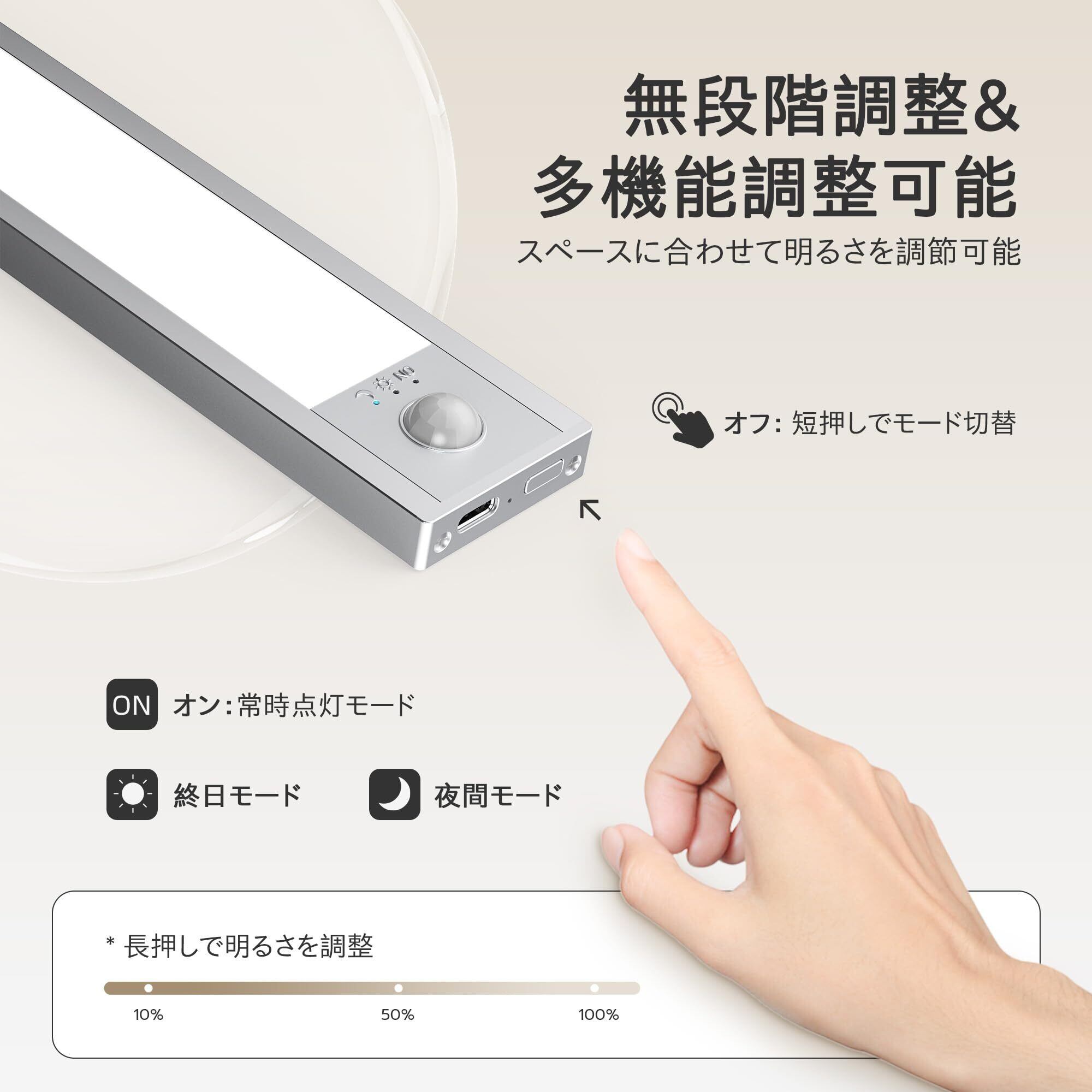【新着商品】LROLTEF キッチンライト 21cm 1500mAh LED 人感センサー Type-C充電式 室内 マグネット貼り付け バーライト 無段階調光 キャビネット 工事不要 省エネ クローゼット/キッチン/廊下/寝室用 6500K 簡単取付 高感度センサー 2個入 | SmartLiving+