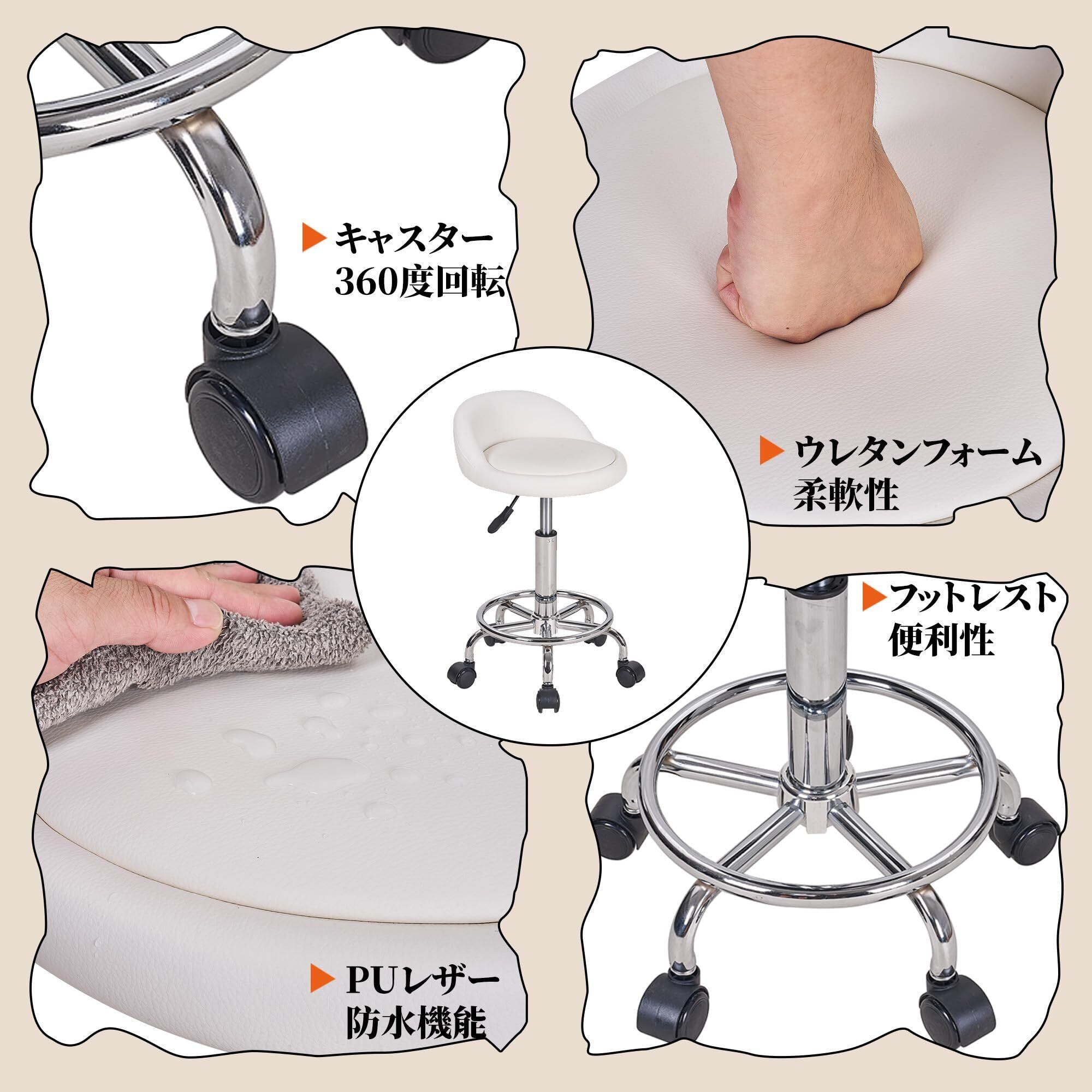 【数量限定】VECELO キャスター付き回転スツール 背もたれ低め 昇降タイプ 丸椅子 PUレザー フットレスト付 座面高さ45〜62cm 診察 エステ サロン スツール 約幅36×奥行32×高さ45〜62cm 重量約4.3kg【日本正規輸入品】 | SmartLiving+