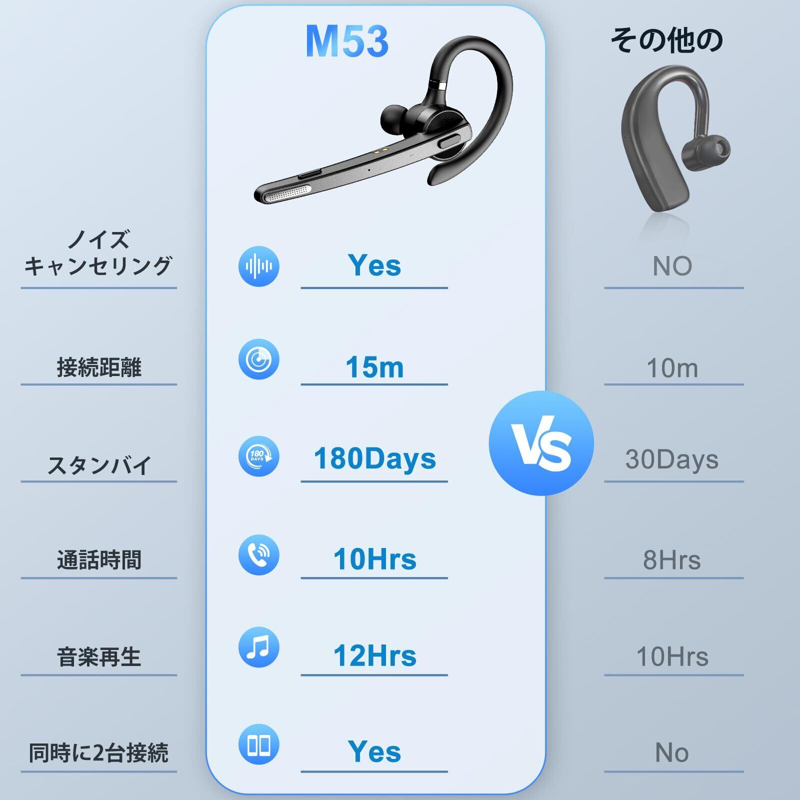 New Bee ヘッドセット Bluetooth 片耳 Bluetoothヘッドセット ハンズフリー通話 耳掛け型 左右耳兼用 ノイズキャンセリング マイク内蔵 ミュート機能 Siri対応 2台同時接続 勤務/運転/オンライン会議/ビジネス用 黒 M53