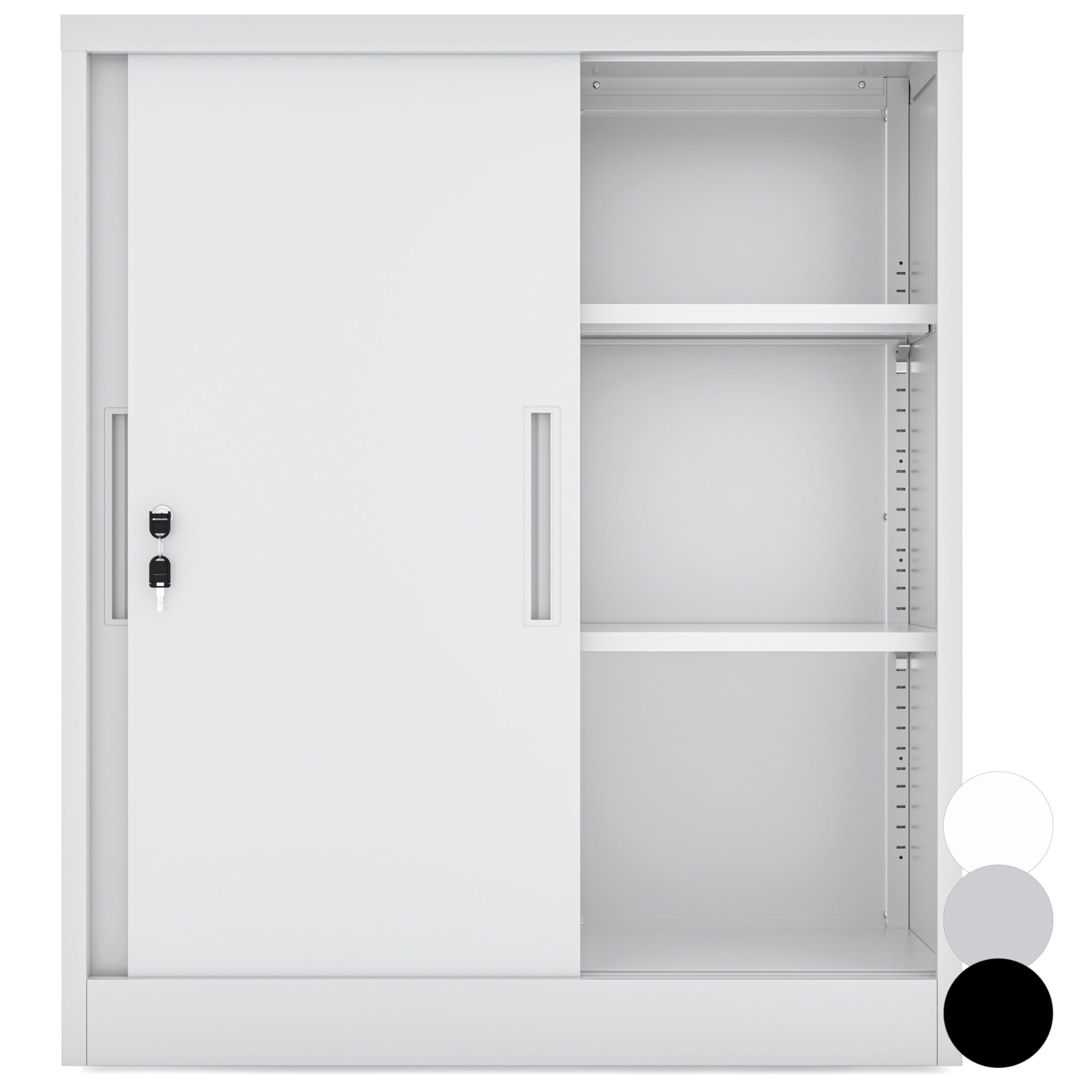DEWEL ロッカー 引戸書庫 3段 引き違い書庫 システム収納庫 幅900×奥行400×高さ1050mm スチールキャビネット スペアキー付き 可動棚付き 書庫 書類棚 保管庫 オフィス 業務用 書類収納 A4対応 抗菌加工 ホワイト おしゃれ 法人、個人事業主様向け商品 (グレー)