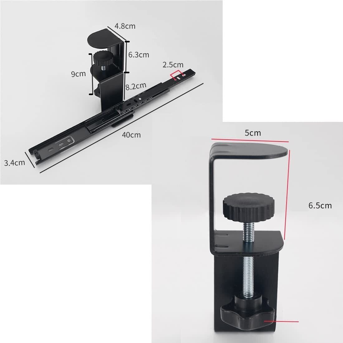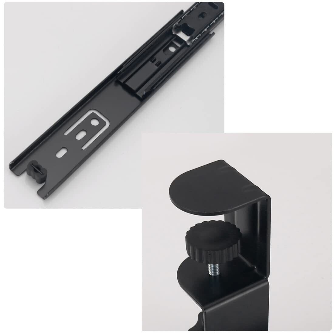Mult デスク下 引き出し スライドレール キーボードスタンド クランプ式 吊金具 穴なし 横付 奥行20cm 左右セット ブラック
