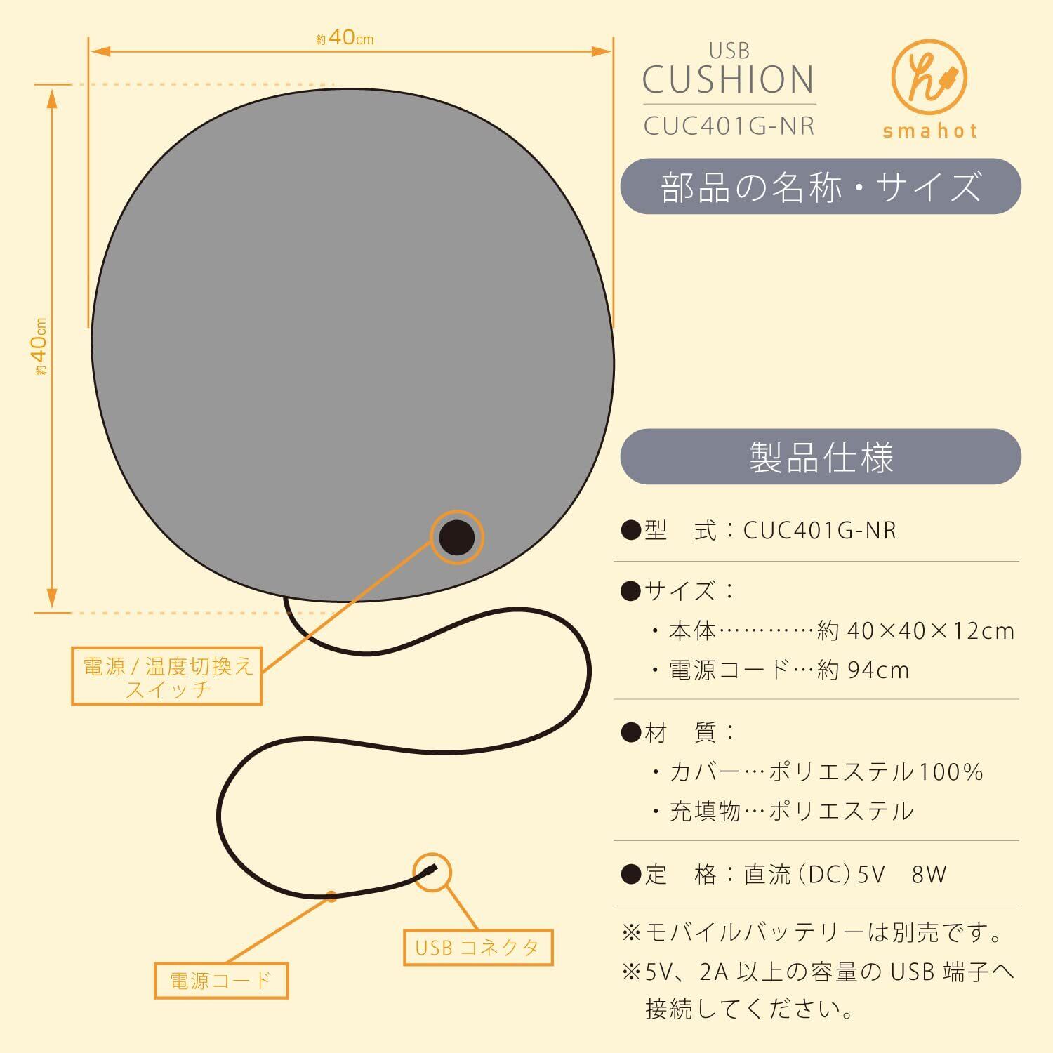 広電(KODEN) USB ホットクッション 一人用 アウトドア 速暖 40×40cm ネイビー CUC401G-NR