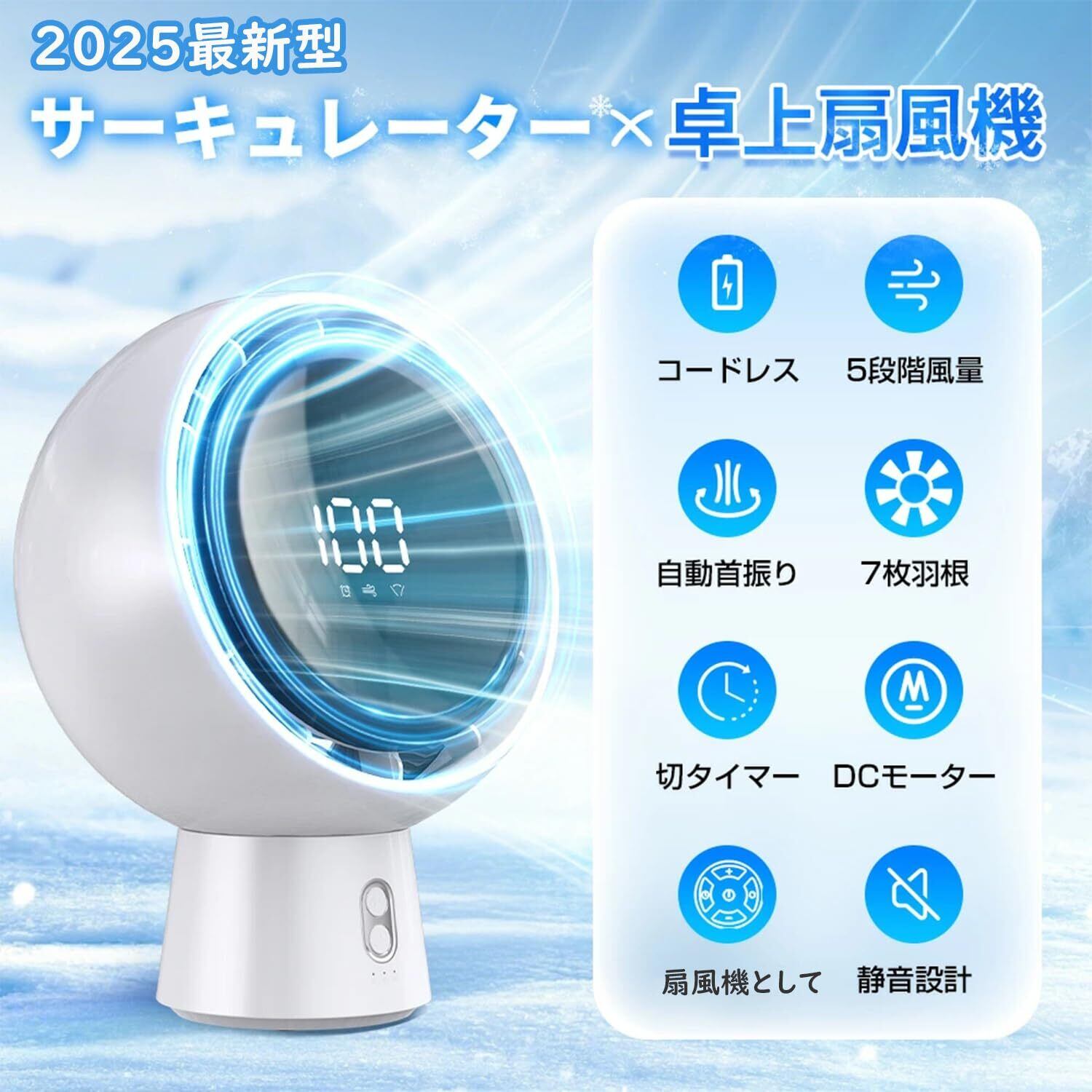 【2025年革新デザイン&高性能DCモーター搭載】 このサーキュレーターは革新デザインと高性能DCモーターを採用し、直進性の高い風を発生させ、空気を循環する性能に特化しています。室内の空気が循環させて温度差を少なくし、エアコンは温度調節できます。コンパクトながら風力は抜群で、オフィスや寝室の空気を効率的に循環させます。