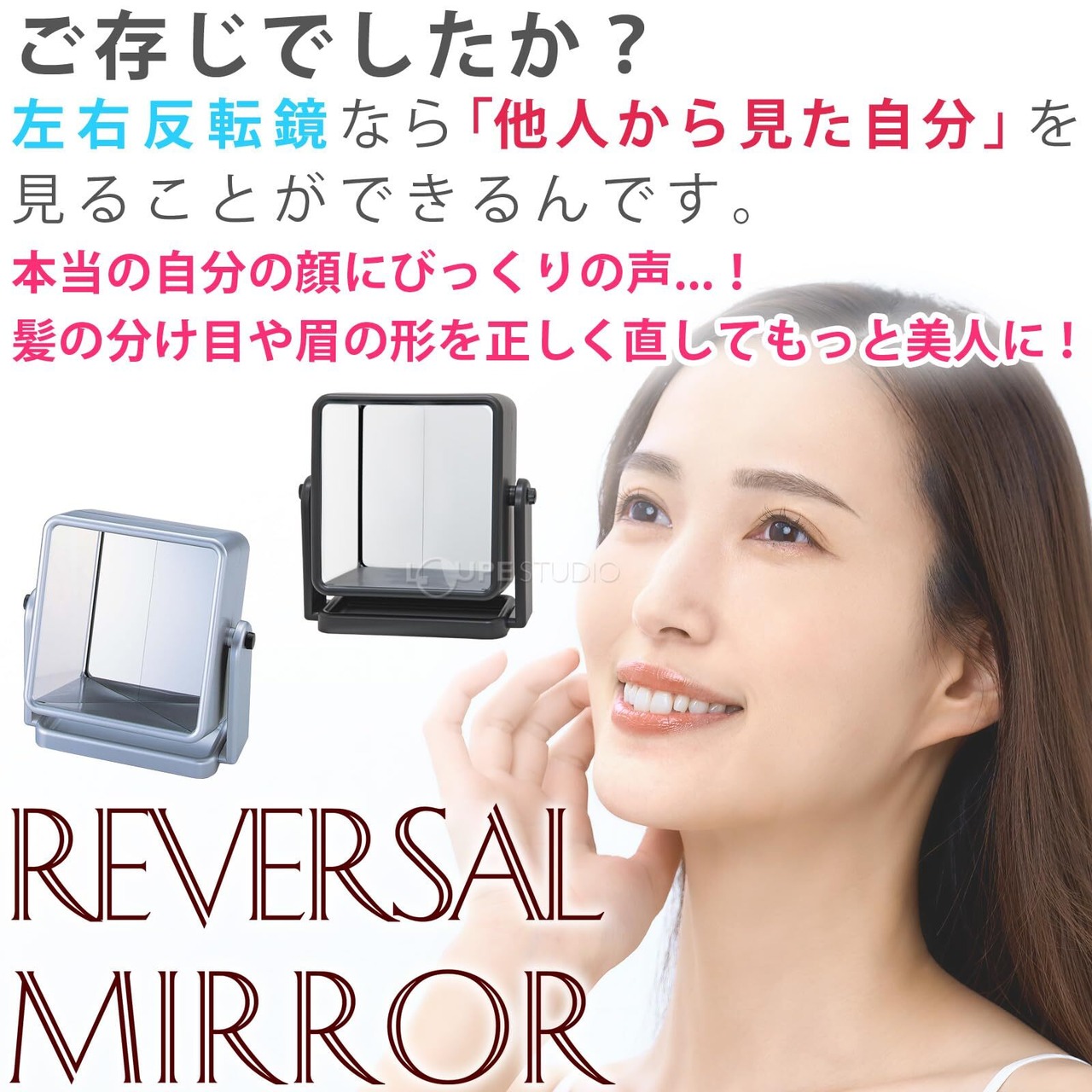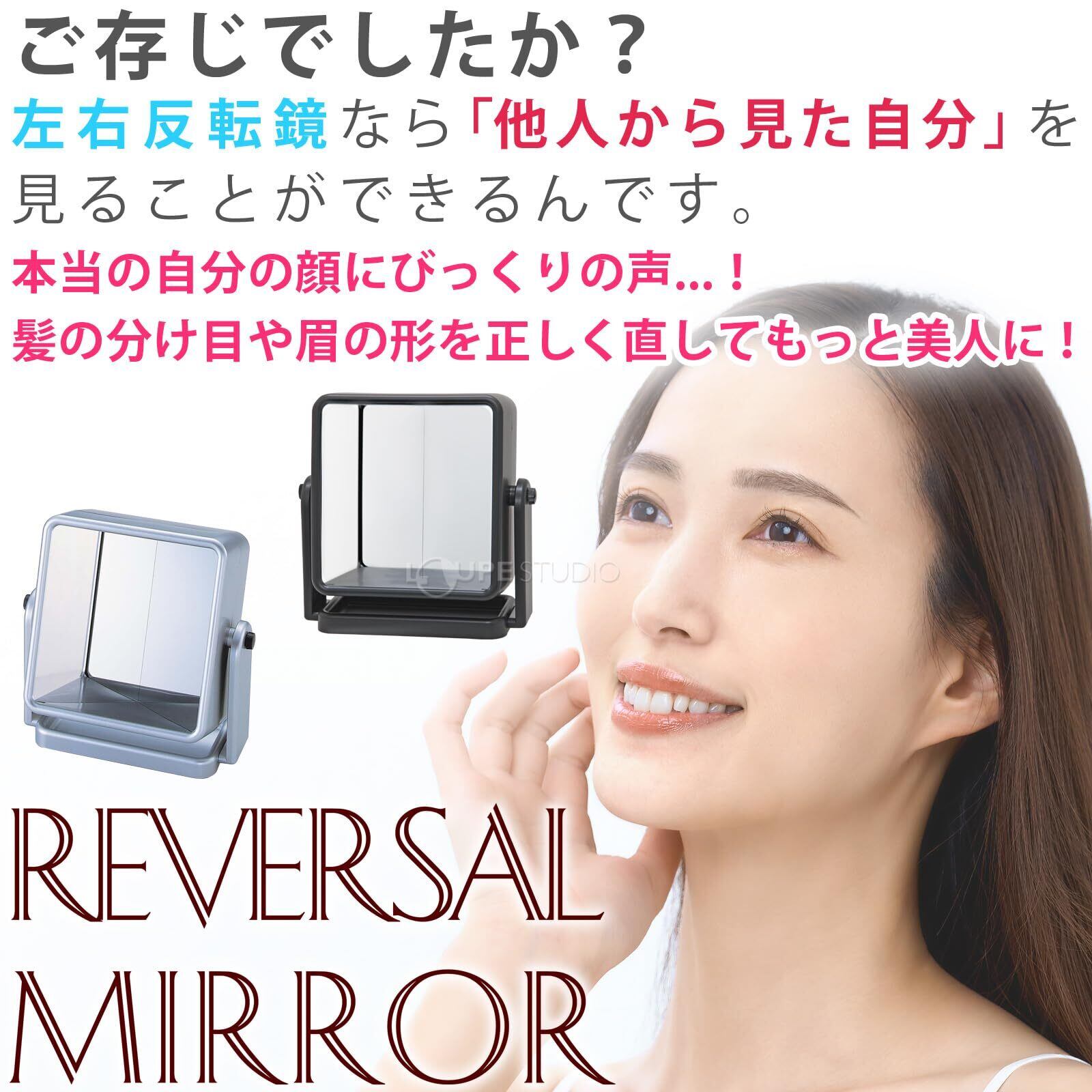リバーサルミラー 左右反転鏡 ヤマムラ 卓上ミラー 化粧鏡 卓上ミラー 鏡 化粧 メイクミラー 左右反転 スタンドミラー YRV-005 ブラック