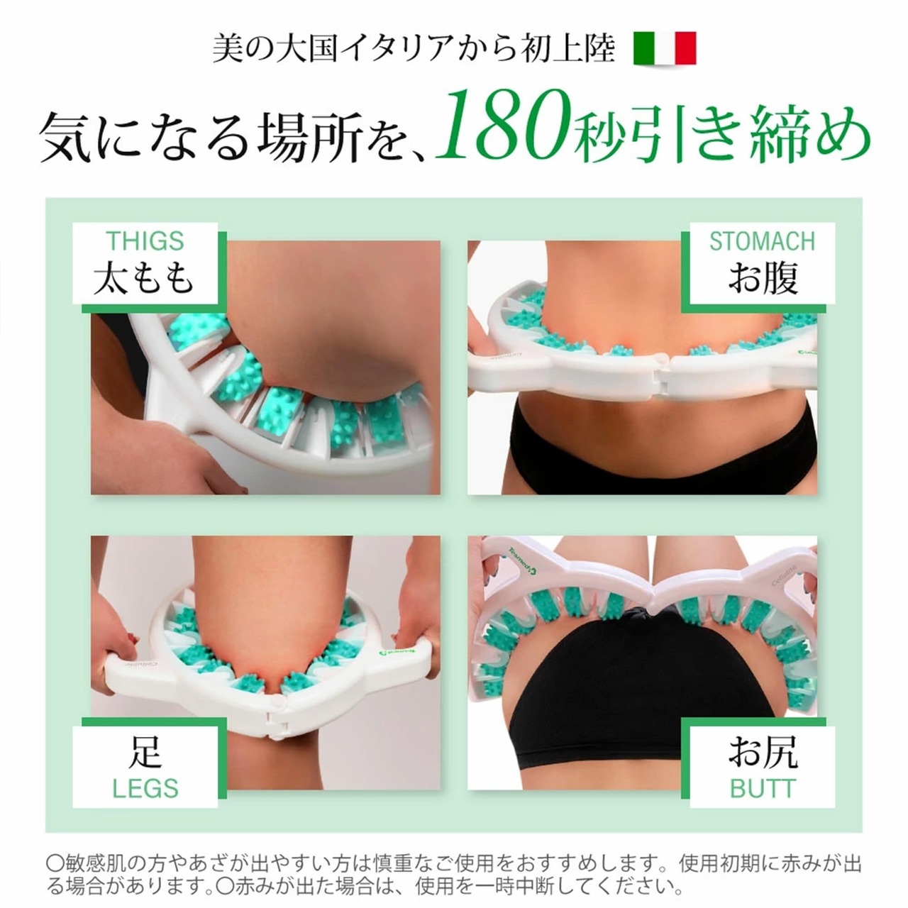 1. 1日180秒の使用で、太もも・お尻・お腹・脚などを手軽にケア。日々のリフレッシュに最適なセルフケアアイテムです。
