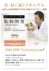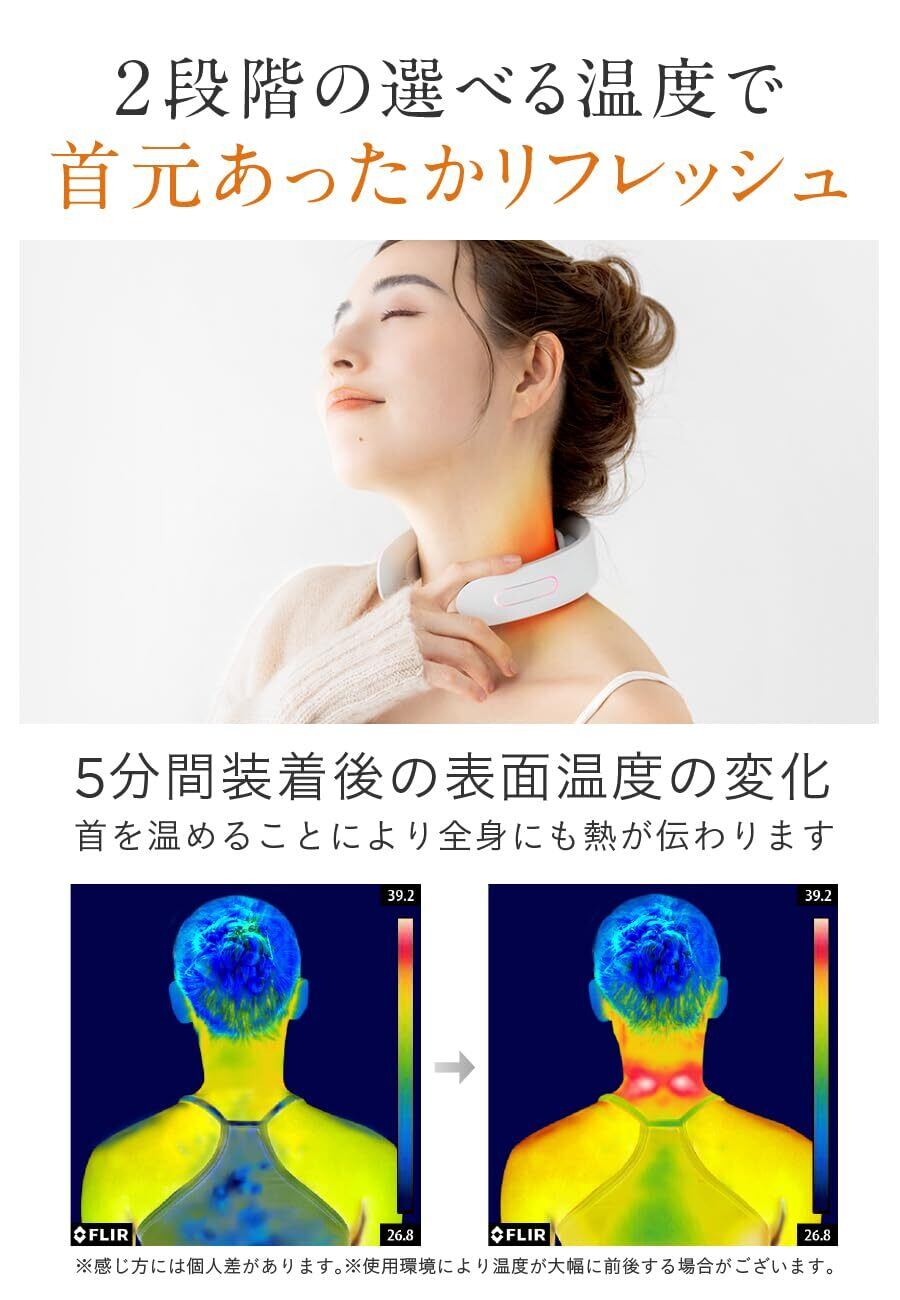 【首にフィットする着け心地】 2枚の電極パッドと柔軟性のあるフレーム設計で、首にピッタリフィットします。 お肌に優しい材質で、心地よい装着感です。