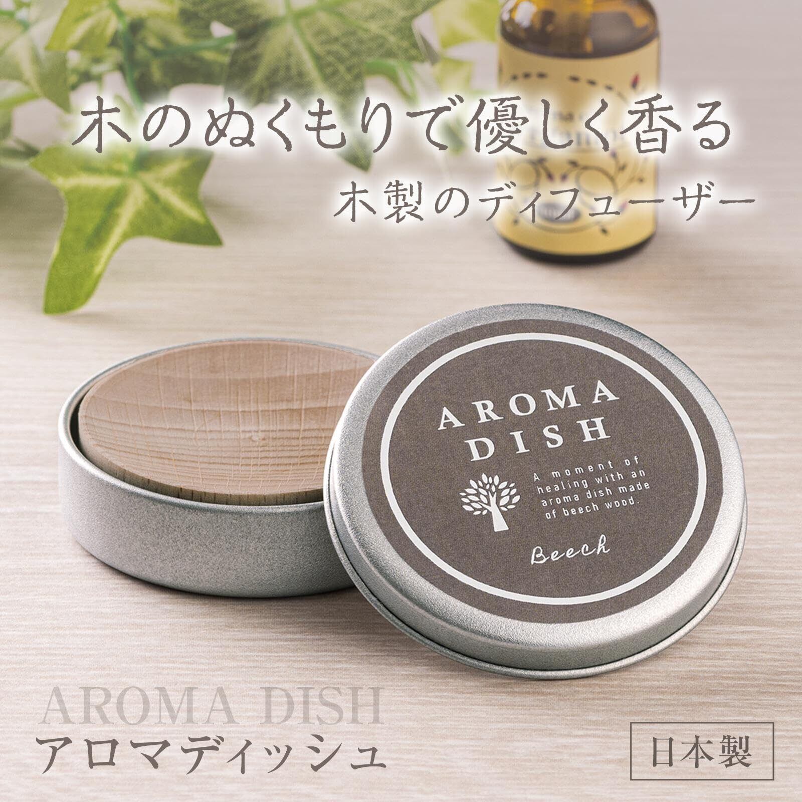 コモライフ アロマディッシュ アロマ ディフューザー 木製 アロマウッド 天然木 ビーチ材 コンパクト 日本製
