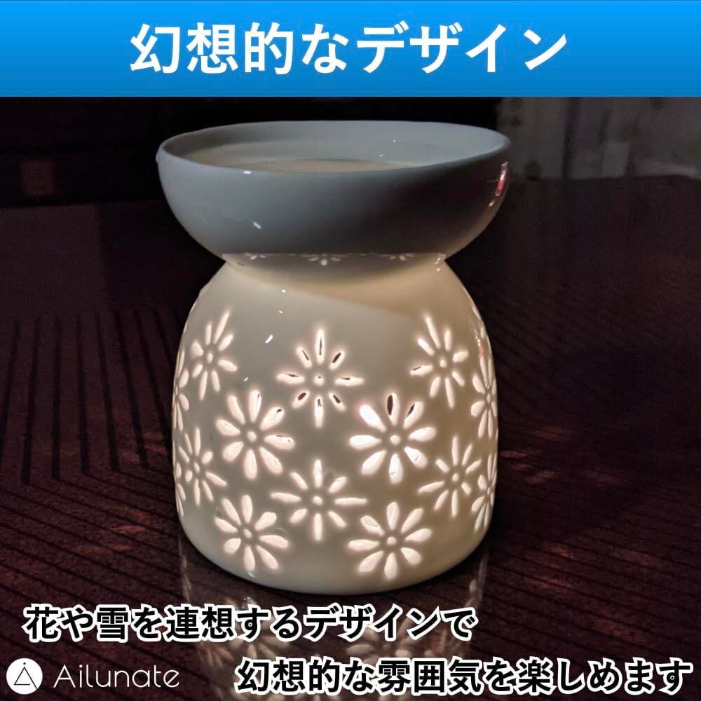 Ailunate アロマポット アロマバーナー アロマキャンドル 陶器 アロマディフューザー 茶香炉 アロマ炉 ホルダー おしゃれ 花 雪