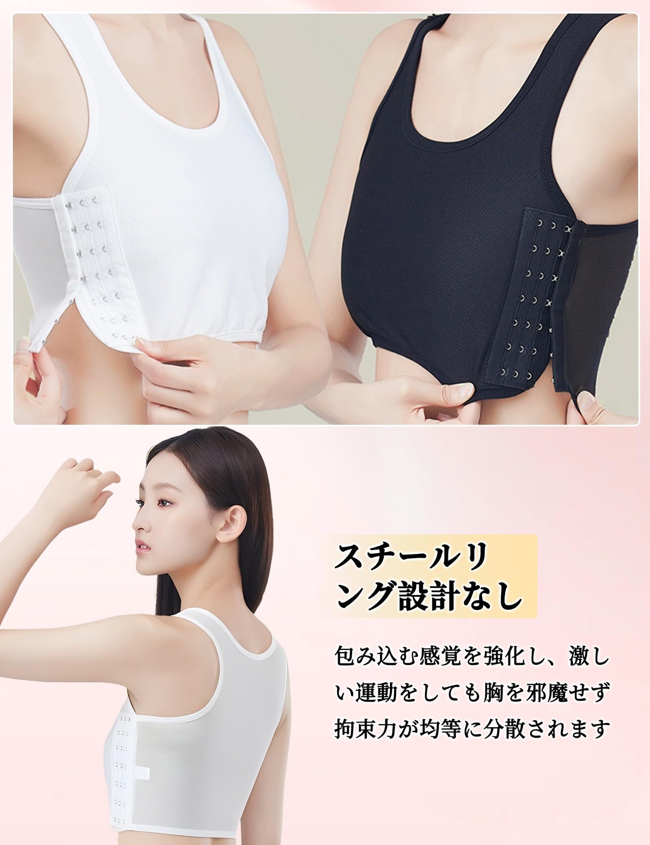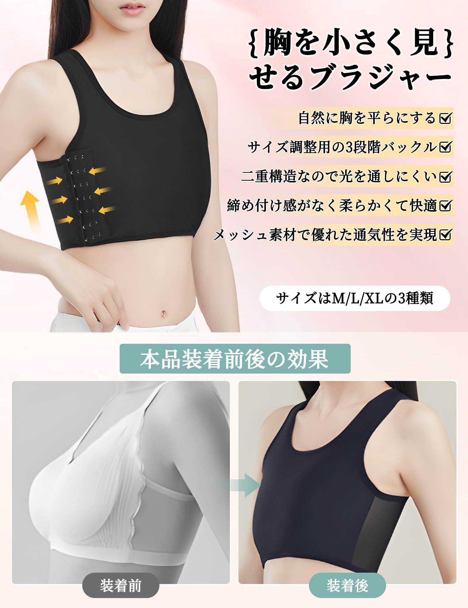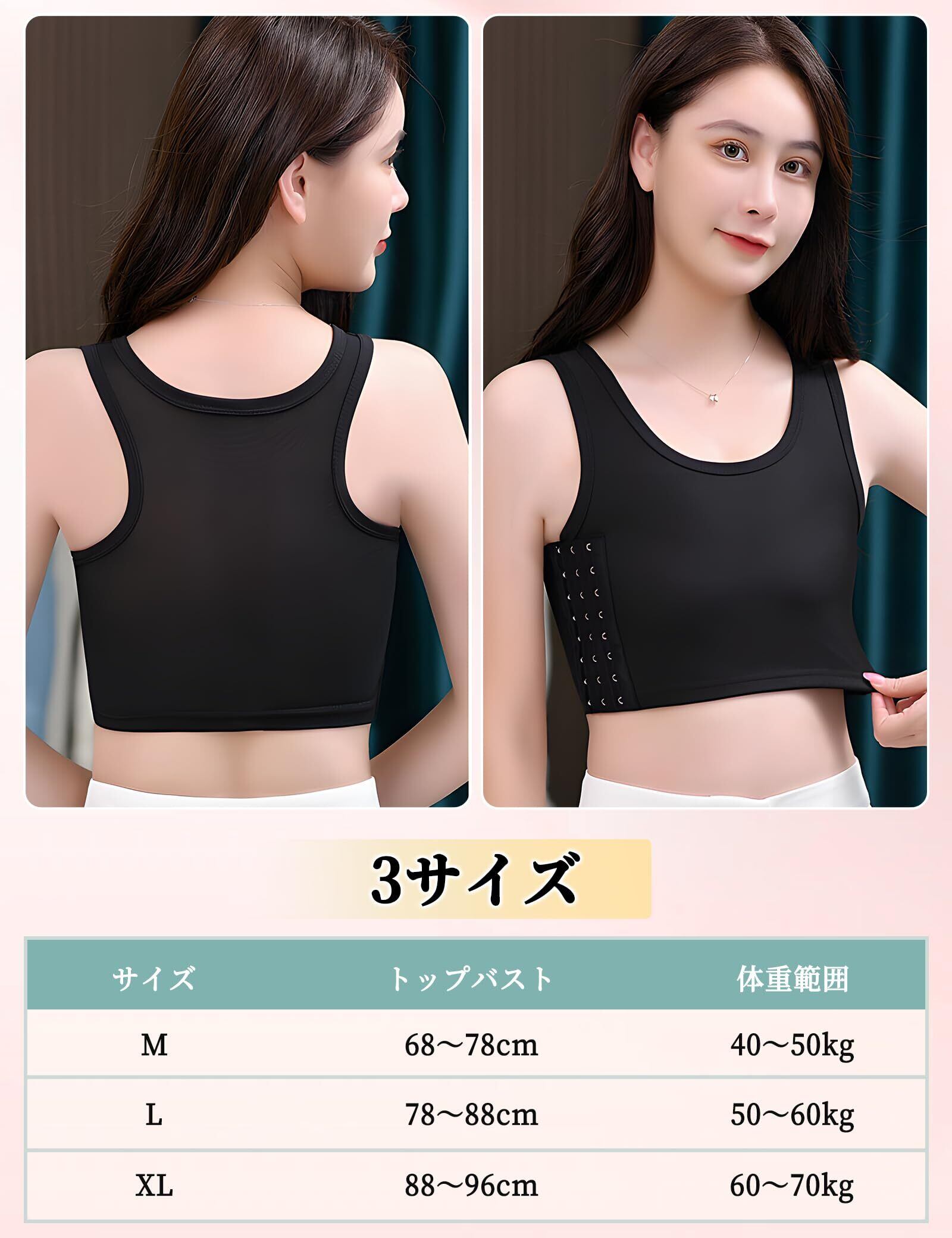 ✨【締め付け感なし、胸を小さく見せる】自然に胸を引き締め、美しい曲線を見せます。右側にフックが付いており、着脱が簡単で、後ろに手が届きにくい方でも楽に着用できます。胸をハリのある印象に見せたい方、運動中の胸の揺れが気になる方、男装のインナーウェアやコスプレのサロンブラとしても最適です。